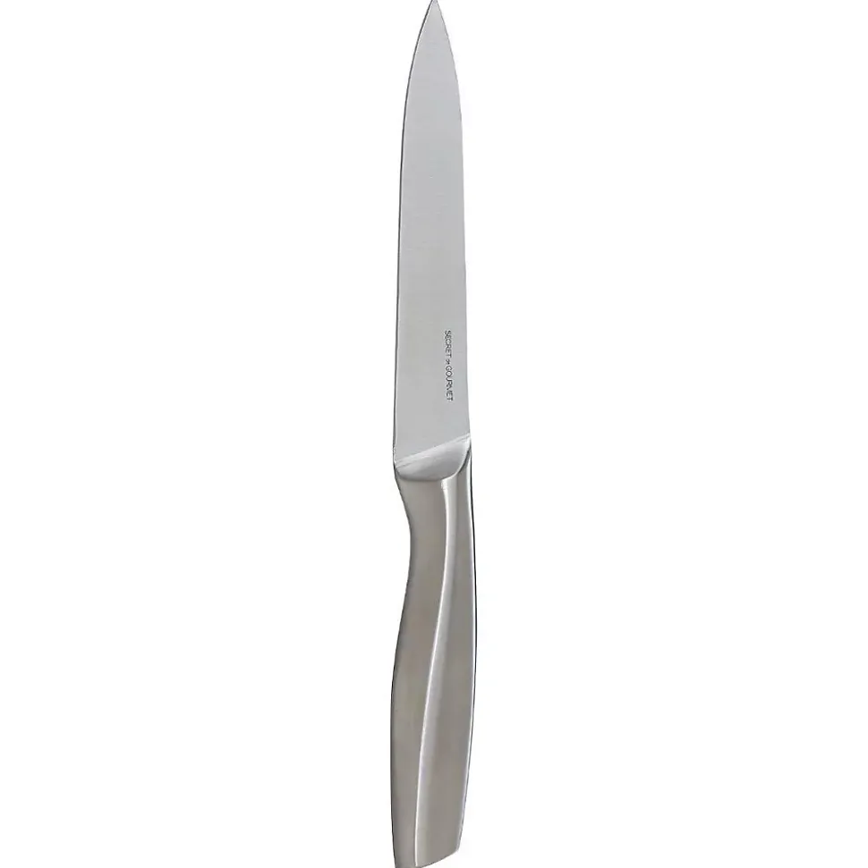 Dimensions : L. 2.5 x P.1.5 x H. 25.7 cmLongueur de la lame : 13,3 cmPoids : 0,1 kgMatière du manche : Acier inoxydableMatière de la lame : Acier inoxydableCompatibilité : Lave-vaisselleType de soie : Pleine soieType de couteau : Utilitaire