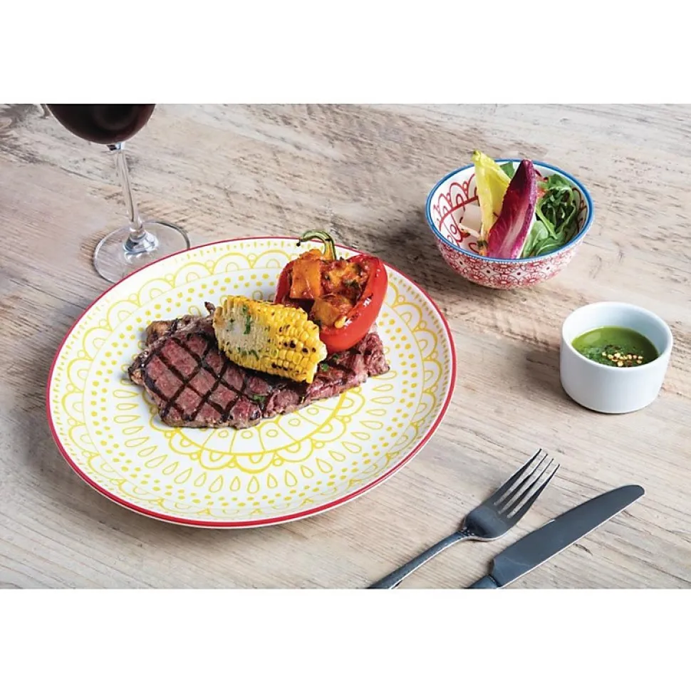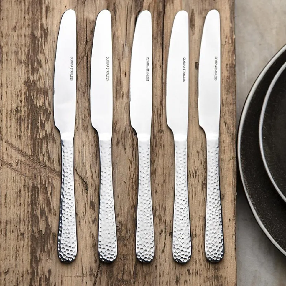 Couteaux pour restaurant en inox Ajoutez un charme subtil et rustique à vos tables avec ces couteaux en inox Olympia Tivoli. Fabriqués avec un manche martelé, ces couteaux ont un look pittoresque, donnant à votre table une ambiance conviviale pour que vos clients se sentent immédiatement à l’aise. Fabriqués en inox 18/10 de qualité supérieure, ces couteaux de table sont exceptionnellement tranchants et robustes, ce qui permet une coupe sans effort. La construction en inox de qualité professionnelle rend également ces couverts adaptés au lavage au lave-vaisselle professionnel, vous permettant de gagner un temps précieux lors du nettoyage. Ces couteaux conviennent parfaitement aux bars, cafés et restaurants traditionnels.Nombre de Pièces: 12Dimensions: 235(L) mmMatériel: Acier inoxydablePoids: 85 gFinition polieManches effet marteléManches en forme de larmeBords arrondis lissesLavables au lave-vaisselleLame dentéePetit couteau à dessert également disponible (code produit : DE382)