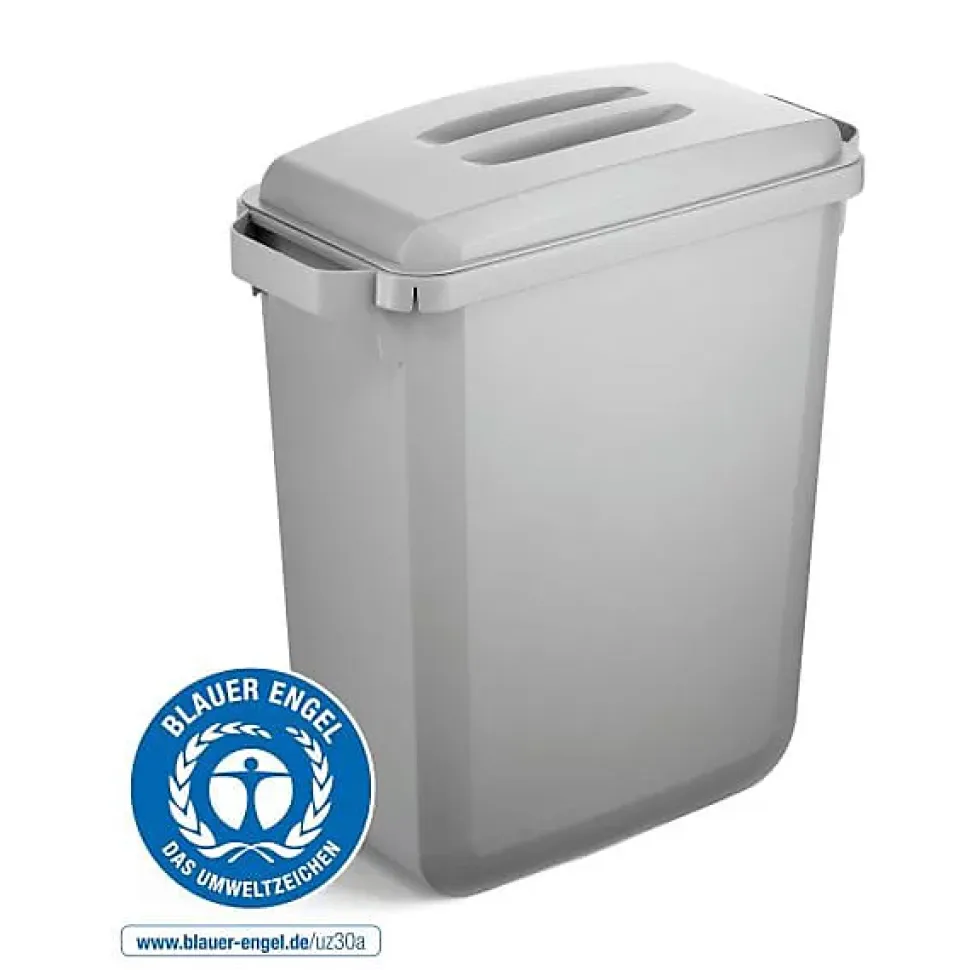 Couvercle pour DURABIN 60 avec poignée intégrée pour un retrait facile. Fabriqué en plastique recyclé labellisé « Blue Angel ».