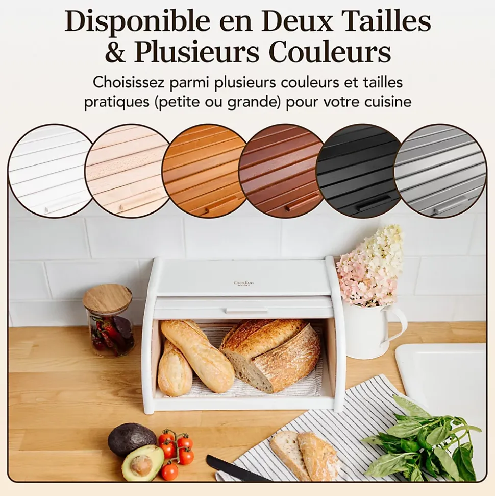 Creative Home Boîte à Pain Blanc – 38 x 28,5 x 17,5 cm (+/- 1 cm) – Boite a Pain Bois – Huche à Pain – Boite en Bois