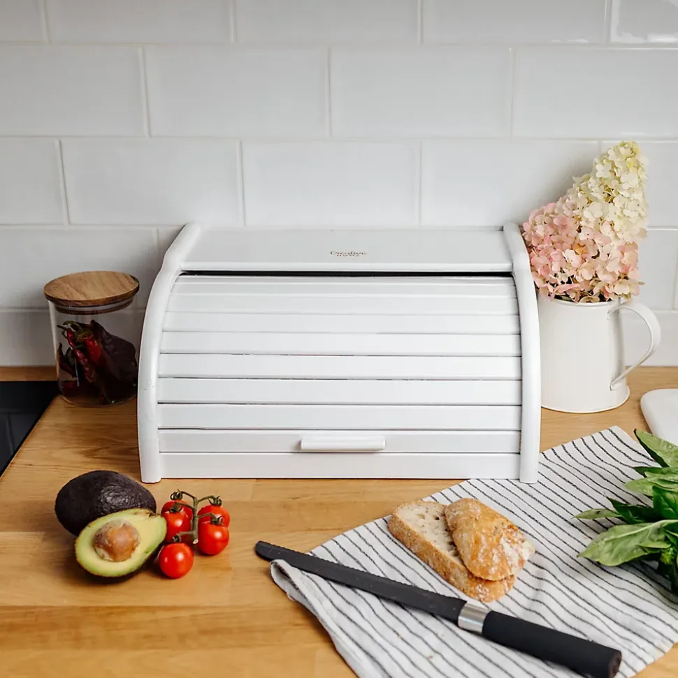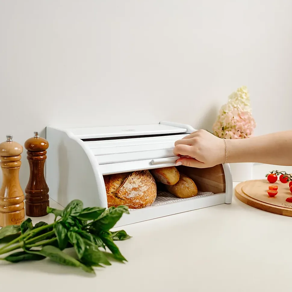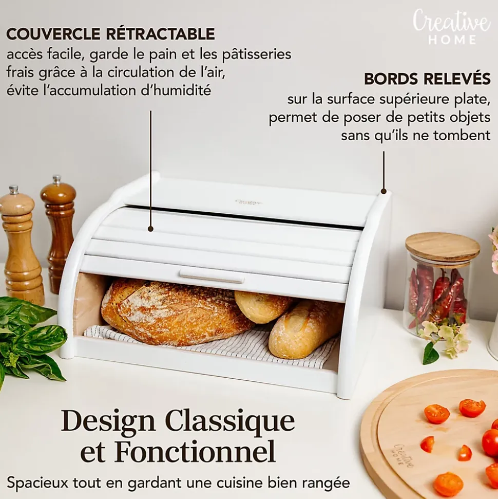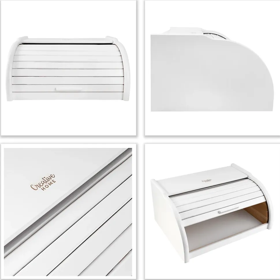 Creative Home Boîte à Pain Blanc - 38 x 28,5 x 17,5 cm (+/- 1 cm) - Boite a Pain Bois - Huche à Pain - Boite en Bois