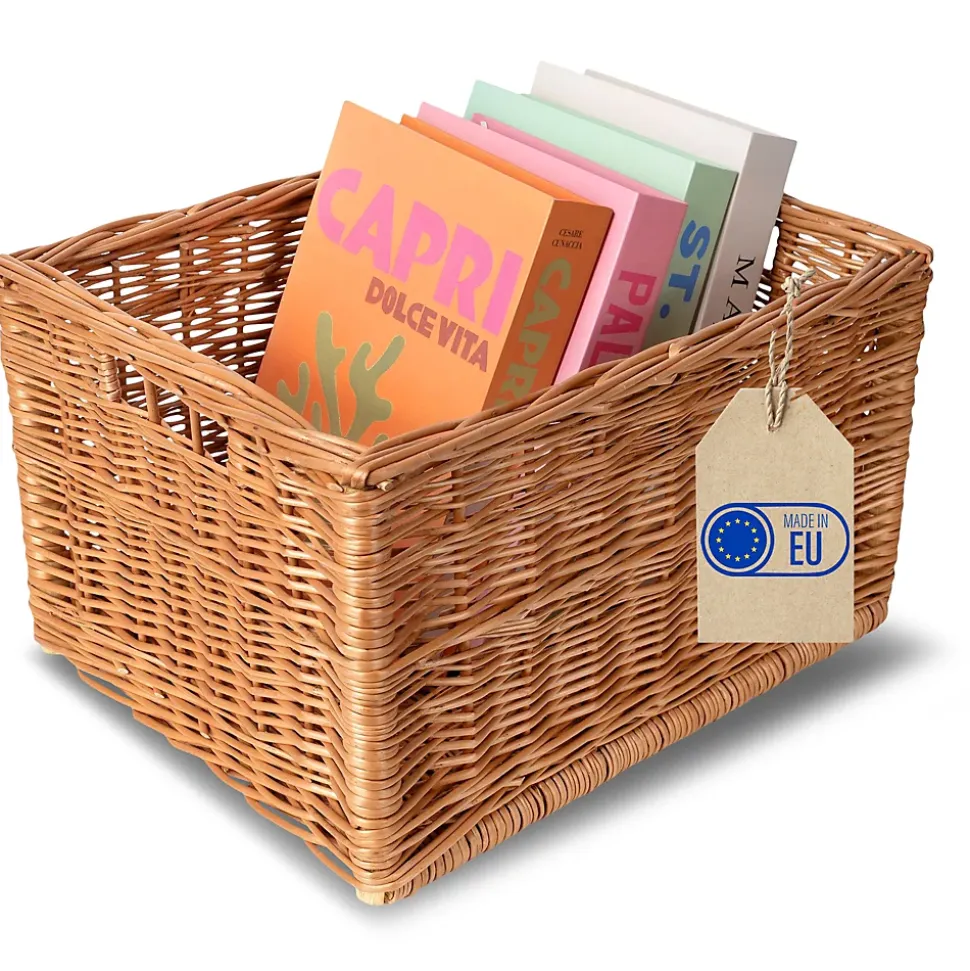 EXCELLENTE QUALITÉ – Ce panier Creative Home est tressé à la main à partir d’osier naturel, un matériau robuste, durable. Ses poignées intégrées facilitent le transport et le rangement au quotidien. Chaque pièce est unique, et les dimensions peuvent varier légèrement (+/- 2 cm). Capacité maximale : 5 kg.ACCESSOIRE PRATIQUE ET DÉCORATIF – À la fois utile et esthétique, ce panier apporte une touche chaleureuse à votre intérieur. Il trouve sa place partout dans la maison : cuisine, bureau, salle de bain, dressing, chambre d’enfant ou salon. Idéal à poser sur des étagères pour un rangement discret et élégant.MULTIFONCTION – Ce panier peut être utilisé comme rangement pour le linge, les jouets, les rouleaux de papier toilette, les couches de bébé, les documents, ou même comme corbeille décorative. Sa forme rectangulaire compacte s’adapte facilement à tous vos besoins d’organisation.STYLE INTEMPOREL – Avec sa teinte naturelle et son tressage soigné, ce panier en osier s’intègre harmonieusement dans tous les styles de décoration : rustique, bohème, classique ou contemporain. Il combine fonctionnalité et charme authentique.CONÇU AU ROYAUME-UNI, FABRIQUÉ EN EUROPE – Imaginé par une marque britannique et fabriqué en Union européenne, ce panier respecte des normes de qualité élevées. Il est composé uniquement de matériaux naturels et non toxiques, pour une utilisation sûre et durable dans toute la maison.