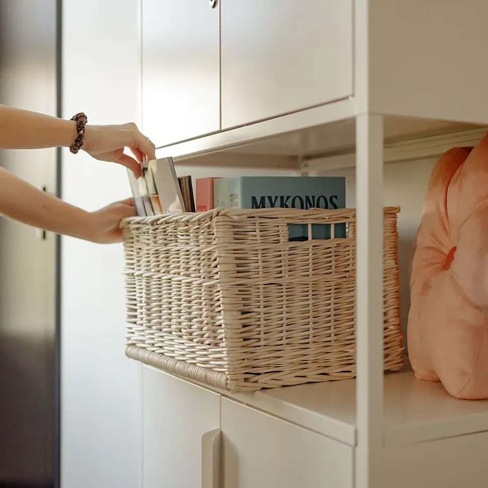 Creative Home Panier De Rangement En Osier Blanc 40 x 30 x 24 cm – Petit Panier Tressé Pour Salle De Bain Cuisine Maison