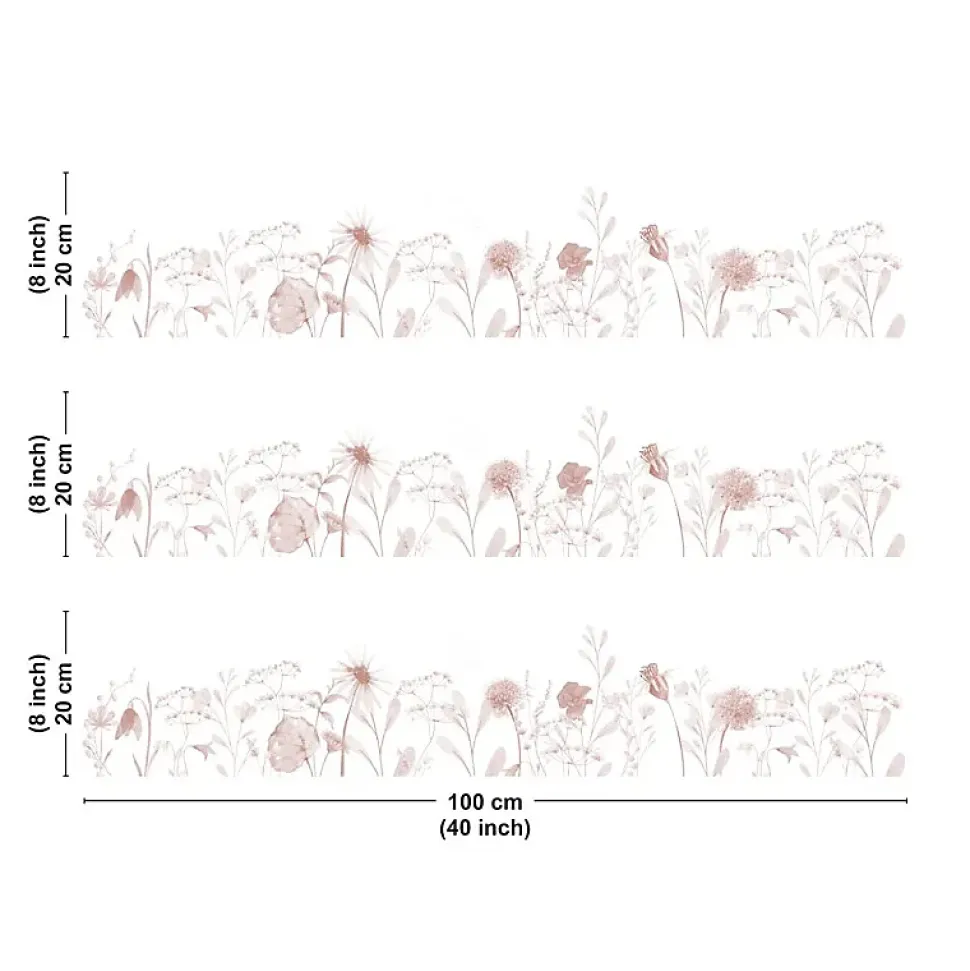 Crédence cuisine en aluminium - motif floral ocre - 300x20 cm (en 3 bandeaux)
