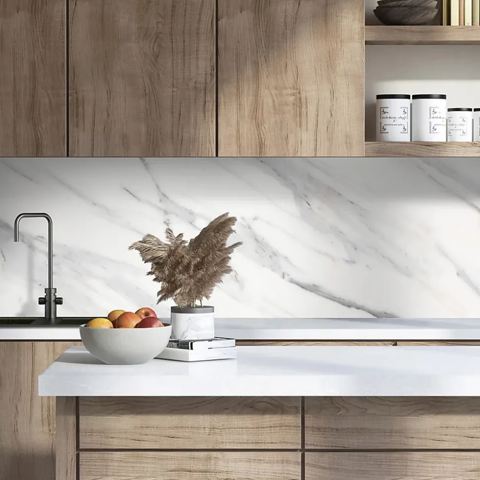 Crédence de cuisine effet marbre blanc IDPanneaux L. 255 x H. 60 cm
