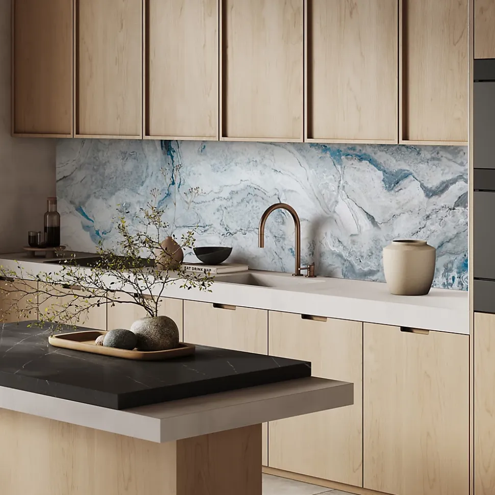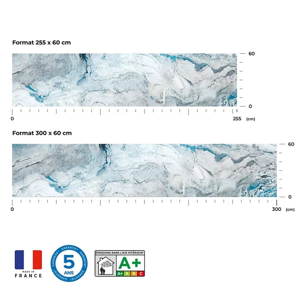 Crédence de cuisine effet marbre bleu lagon IDPanneaux L. 255 x H. 60 cm