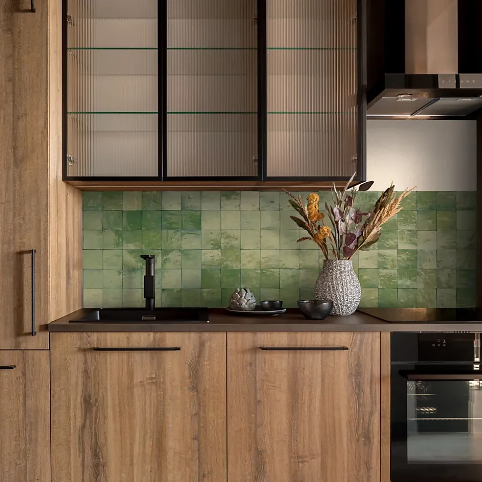Crédence de cuisine effet Zellige vert brillant IDPanneaux L. 300 x H. 60 cm