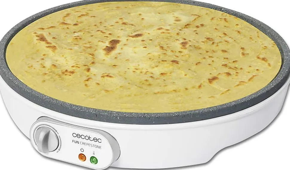 La crêpière électrique Cecotec Fun Crepestone offre une cuisson parfaite grâce à sa puissance de 1000 W et son revêtement RockStone antiadhésif, sans PTFE ni PFOA, pour un nettoyage facile et une cuisson sans collage. Elle est livrée avec une spatule et un répartiteur de pâte à crêpes pour faciliter la préparation. La puissance est ajustable pour s’adapter à tous les goûts, et un témoin lumineux indique lorsque la crêpière est prête à l’usage. L’appareil dispose d’une protection contre les surchauffes pour une utilisation sécurisée. Sa plaque de 30,5 cm de diamètre permet de préparer des crêpes de taille idéale pour toute la famille.