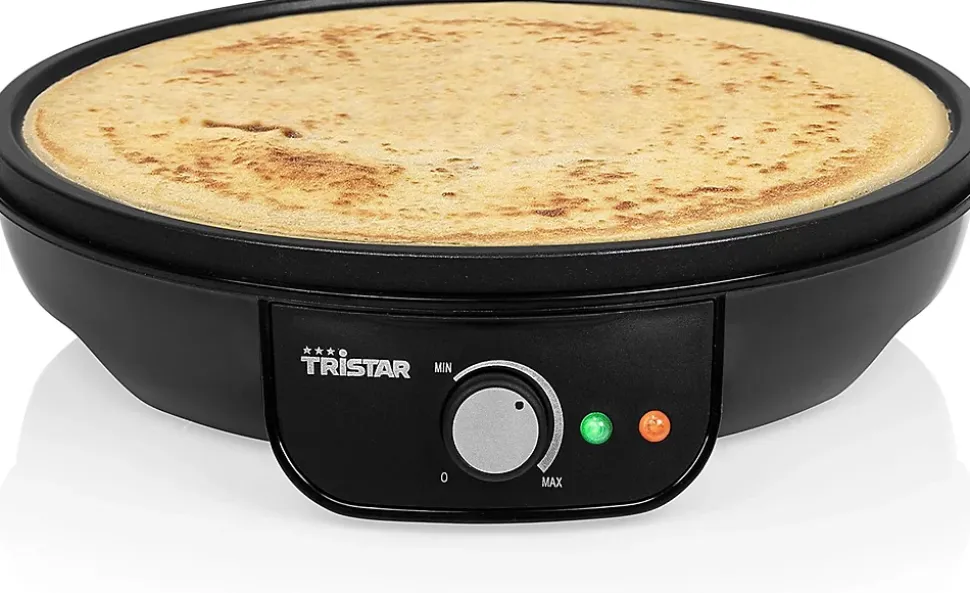 La crêpière électrique Tristar est idéale pour préparer facilement de délicieuses crêpes et pancakes directement à table. Grâce à sa puissance de 1000 W, elle chauffe rapidement et assure une cuisson homogène. Sa plaque fixe de haute qualité, d’un large diamètre de 30 cm, permet de réaliser des crêpes généreuses pour toute la famille. Le revêtement antiadhésif empêche les préparations d’attacher, garantissant des résultats réussis et un nettoyage rapide après utilisation. Le thermostat réglable permet d’adapter précisément la température selon vos envies, tandis que l’élément de chauffe dissimulé améliore la sécurité et l’efficacité thermique. Sa conception pratique intègre des poignées ergonomiques, des pieds antidérapants pour une parfaite stabilité et un espace de rangement du cordon. Livrée avec une spatule, cette crêpière Tristar allie simplicité, confort d’utilisation et fiabilité au quotidien.