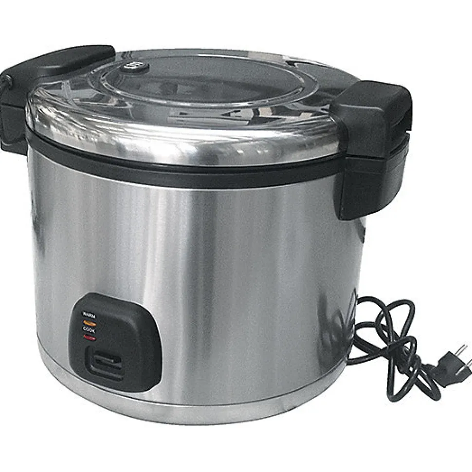 Cuiseur à riz 19 litres électrique Caractéristiques techniques :Poids (kg) : 12,30Diamètre (mm) : 492Hauteur (mm) : 340Énergie : électricitéTension (V) : 230Puissance (kW) : 2,65Fréquence : 50/60Phase : 1F+NCapacité : 10 litres de riz cru ou 19 litres de riz cuitEntièrement fabriqué en acier inoxydable. Bol en aluminium Poignées latérales serrées Lumières pour la cuisson et le chauffage, contrôle automatique pour la cuisson