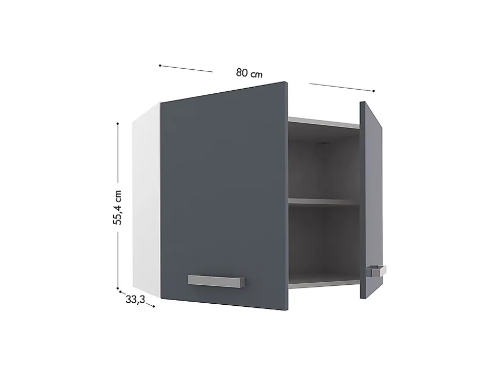 Faites de la cuisine votre nouvelle passion grâce à nos cuisines complètes TRATTORIA qui vous donneront envie de cuisiner avec leurs nombreux rangements astucieux. Choisissez les dimensions qui s’adaptent le mieux à votre espace. Petit espace ? Optez pour l’ensemble de cuisine de 180 cm composé de 6 éléments de rangements. Possibilité de compléter cet ensemble par des caissons supplémentaires de la collection TRATTORIA. Caractéristiques de l’ensemble : Matière : Panneau de particules Finition : Mélaminée Couleur : Gris brillant 6 éléments de rangements : 3 éléments hauts & 3 éléments bas Dimensions totales des éléments hauts : L180x P33,3x H55,4cm Dimensions totales des éléments bas : L180 x P60x H85 cm Fourni sans électroménagers Fourni avec le plan de travail Compatible avec des fours de dimensions standard Compatible avec toutes plaques de cuisson standard Porte : Matière : Aggloméré revêtement polymère Facile d’entretien Résistante aux rayures dans une utilisation et un entretien normale* Plan de travail : Matière : Aggloméré mélaminé Dimensions : L180 x P60 x H2,2 cm Facile d’entretien Se découpe facilement pour accueillir l’évier ou la plaque de cuisson Résistant à la chaleur dans une utilisation normale ** Résistant aux rayures dans une utilisation et un entretien normal* Meubles de rangements hauts : Caisson haut gauche 2 portes 1 étagère intérieure Dimensions : L80 x P33,3 x H55,4 cm Dimensions porte : L39,7 x P1,6 x H55 cm Caisson sur hotte haut 1 porte Caisson destiné à recevoir une hotte aspirante Dimensions : L60x P33,3 x H35m Dimensions porte : L59,7x P1,6 x H34,6 cm Caisson haut droit 1 porte 1 étagère intérieure Dimensions : L40x P33,3 x H55,4m Dimensions porte : L39,7 x P1,6 x H55 cm Meubles de rangements bas : Caisson bas gauche 2 tiroirs 2 portes 1 étagère intérieure Dimensions : L80 x P60 x H85 cm Dimensions
