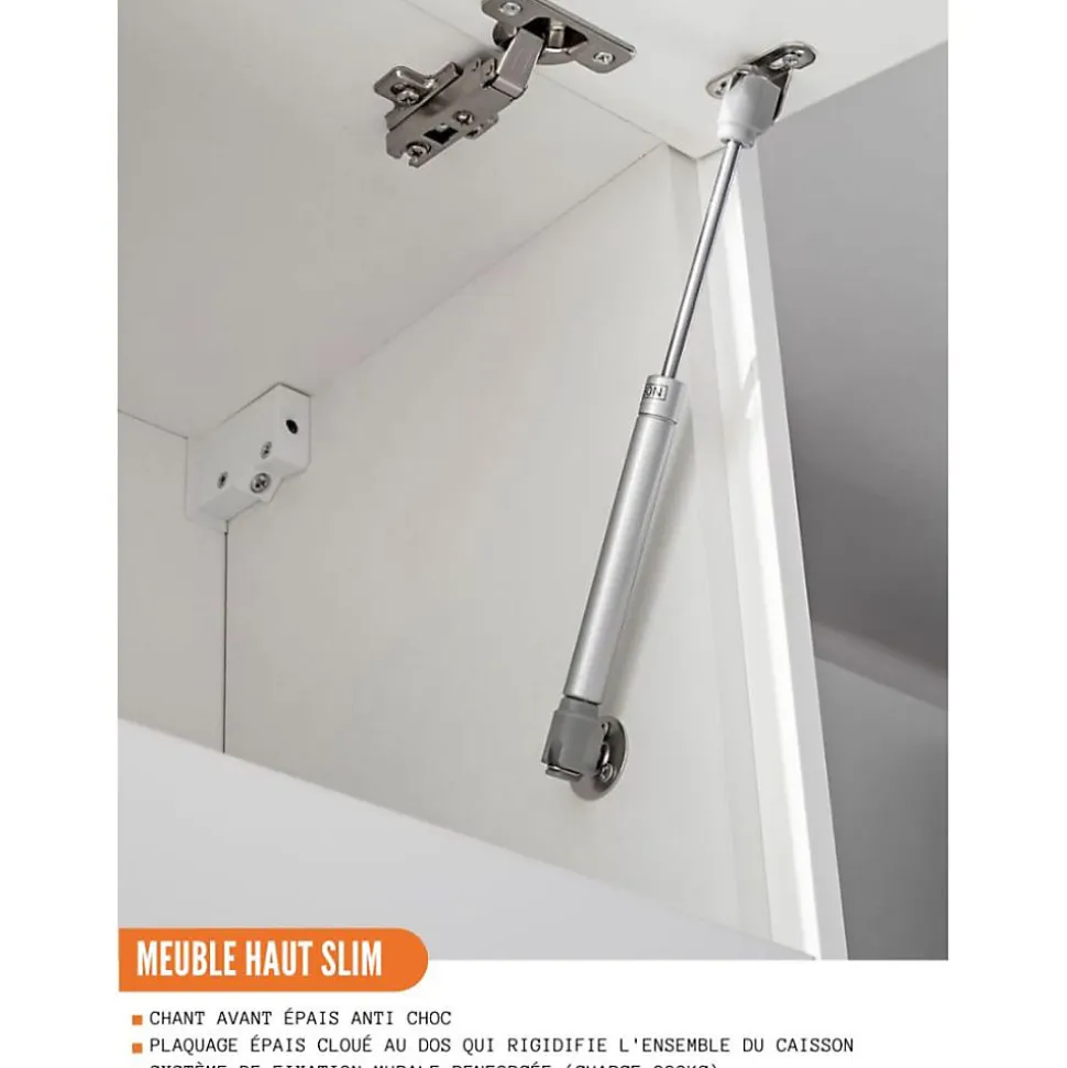 - LE MEUBLE CUISINE HAUT BELLISSI porte relevable Cuisineandcie est design, fonctionnel et économique. Composé d’une porte équipée de charnières renforcées avec des vérins à gaz, pour une ouverture/fermeture automatisée, il présente les dimensions suivantes : L 80cm x H 36cm x P 32 cm.