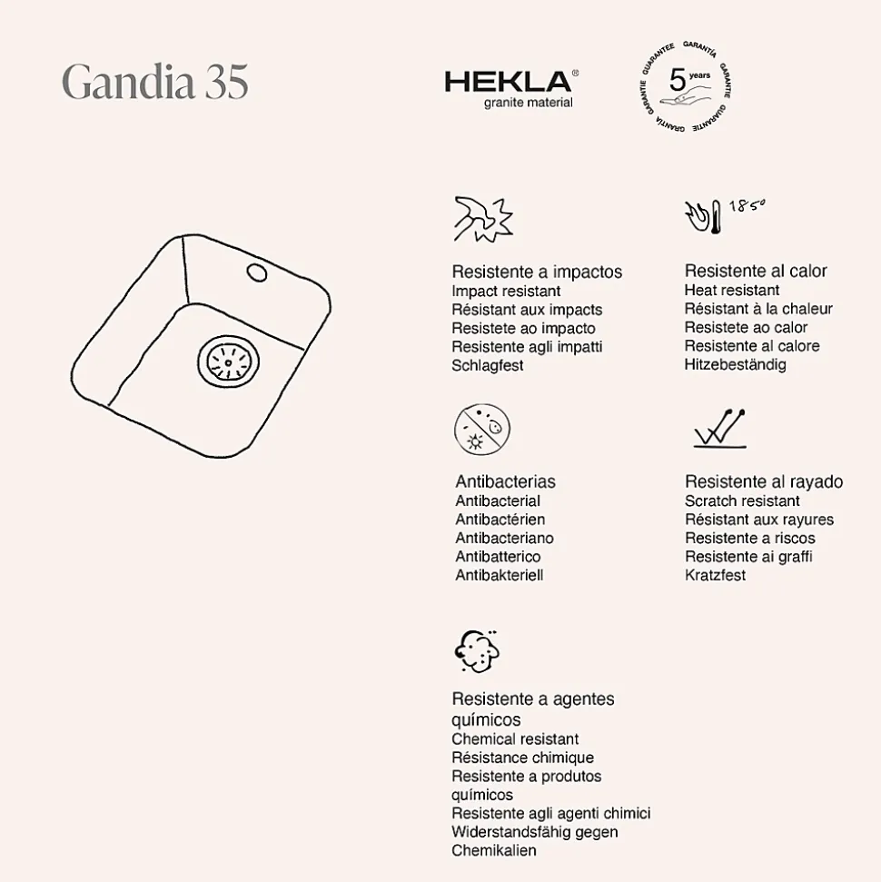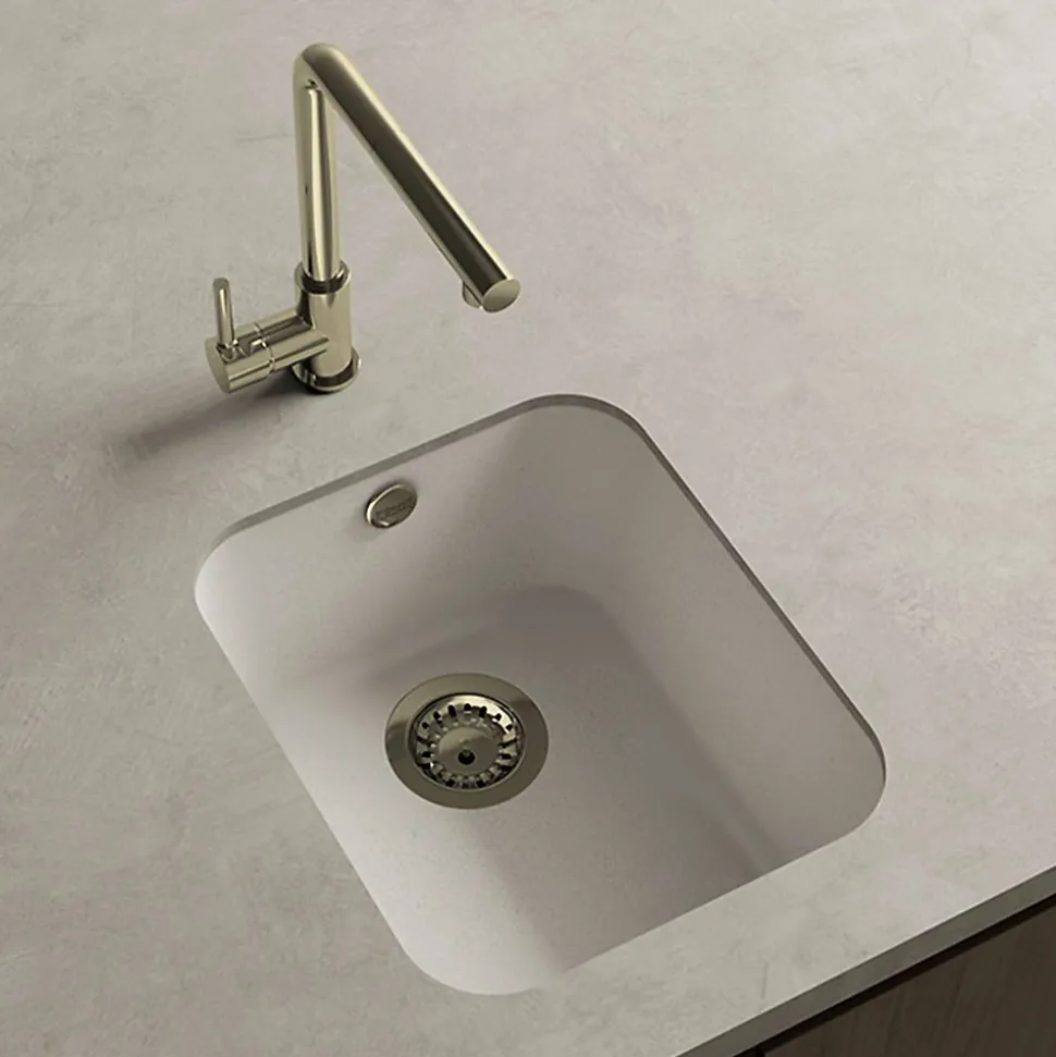 Cuve sous plan POALGI, GANDIA 192, Granit, Blanc Snow, 38 cm, 1 bac bonde or