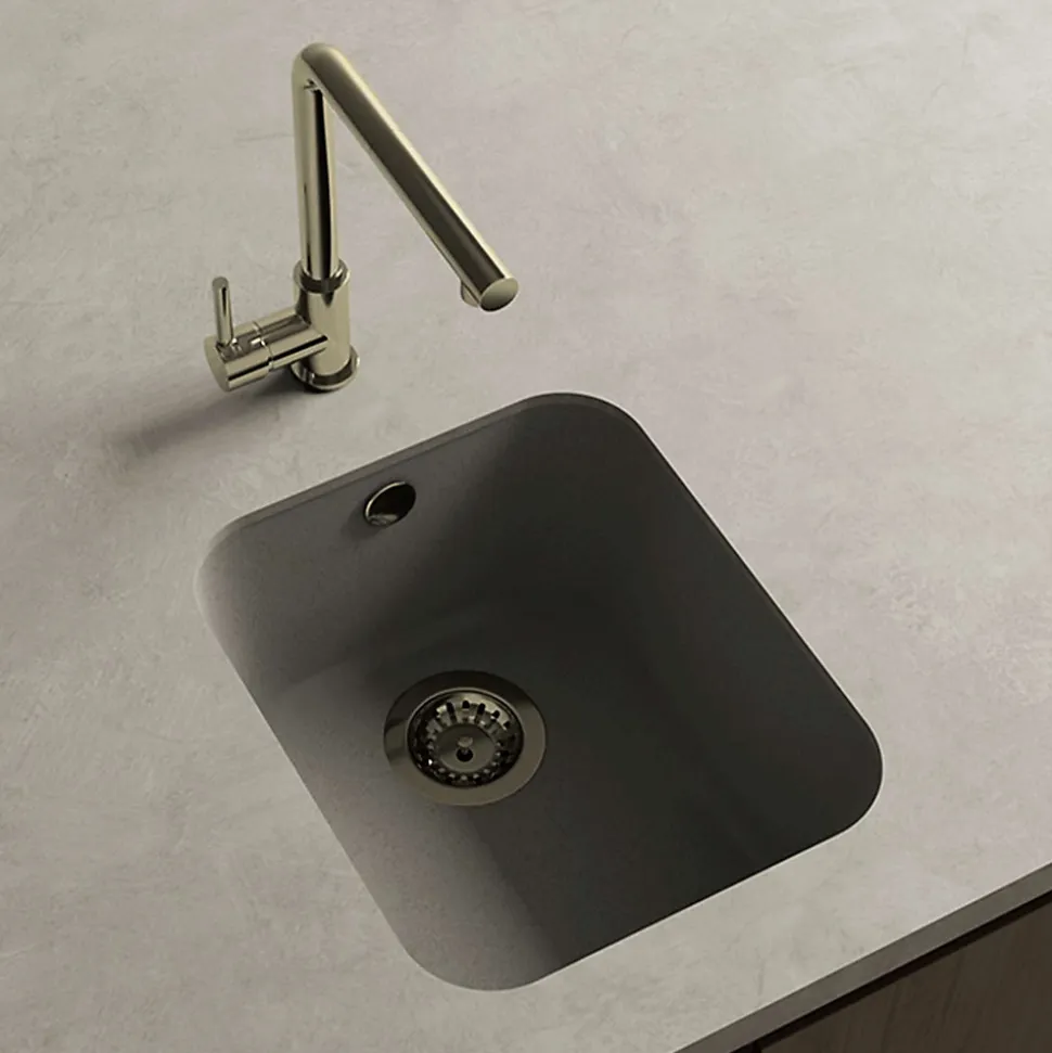 Cuve sous plan POALGI, GANDIA 192, Granit, Gris Ash, 38 cm, 1 bac bonde or