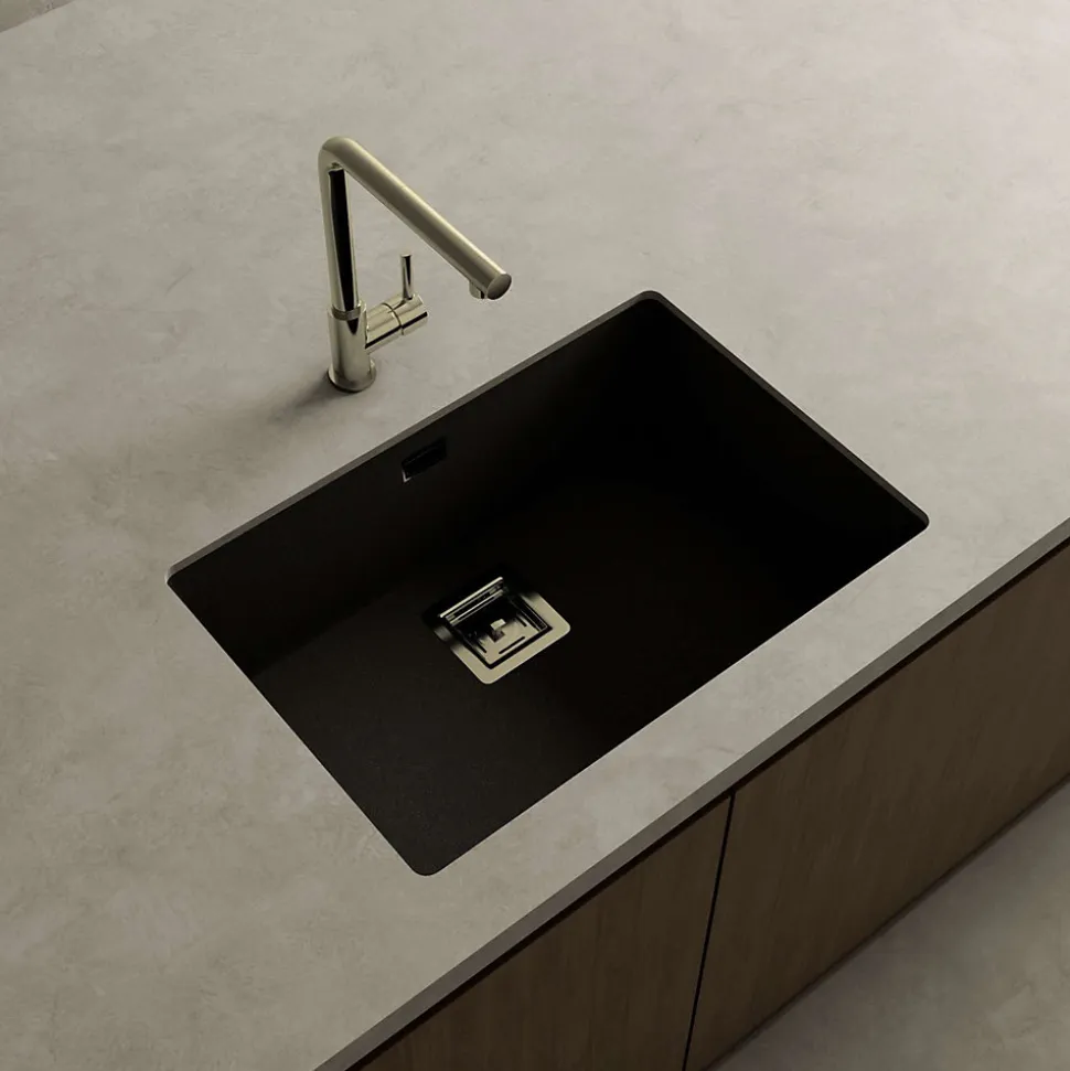 Cuve sous plan POALGI, ZIE 182, Granit, Noir Basalt, 65 cm, 1 bac bonde or