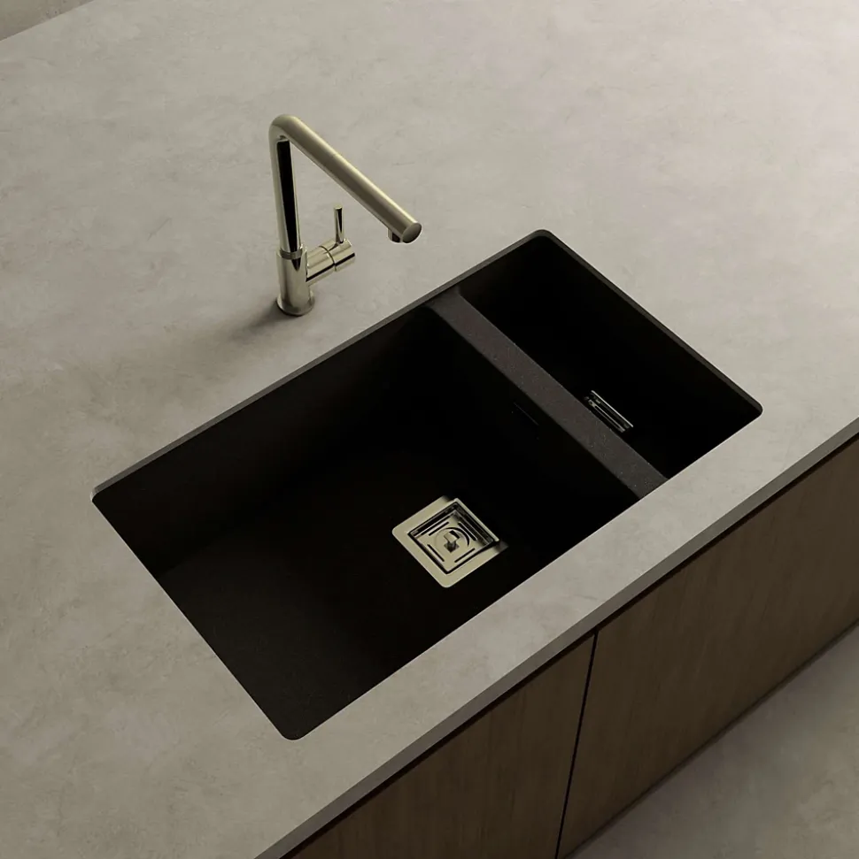 Cuve sous plan POALGI, ZIE 183, Granit, Noir Basalt, 75 cm, 2 bacs bonde or