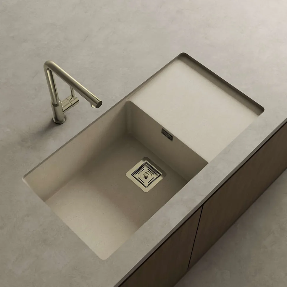 « POALGI : fabricant espagnol depuis 1989 d’éviers et de receveurs de douche haut de gamme et de qualité pour les professionnels du sanitaire et les particuliers. Société certifiée ISO9001.La collection ZieSophistication et modernité, l’évier Zie est un chant à la discrétion. La synthèse d’un nouveau style de cuisine basé sur des lignes pures, l’exemption du superflu et l’intégration de ses éléments. Conçu pour se fondre dans le plan de travail grâce à sa forme, Zie est pur minimalisme.Le matériau HeklaHekla est le nouveau matériau de masse de Poalgi. Un matériau pour résister au passage du temps créé par un projet de recherche et développement dirigé par notre équipe ambitieuse, et approuvé par l’Institut Technologique AIDIMME. Inspiré par la bravoure des volcans, Hekla est un matériau compact composé de charges minérales dans différentes granulométries qui, avec la résine technique ajoutée, enveloppent chaque particule en obtenant un matériau unique et résistant. La technologie de dernière génération utilisée dans la fabrication des produits Hekla garantit la résistance à la charge, les dommages d’impact et les effets des températures élevées et basses, ainsi que la sécurité du transport, de l’installation et de l’utilisation quotidienne. Son traitement de surface empêche l’apparition de bactéries et son traitement V (anti-vieillissement) rend chaque produit Hekla en un véritable survivant au passage du temps.Le revêtement BactiblockCe procédé est un additif antimicrobien idéal pour une large variété de matériaux polymères. La technologie brevetée par la société NBM repose sur de l’argile fonctionnalisée avec de l’argent, laquelle va se comporter comme une source naturelle hautement efficace comme agent microbien. Cet additif inhibe le développement des bactéries de type champignon et levure, se convertissant ainsi en une solution efficace contre les odeurs et les tâches. »