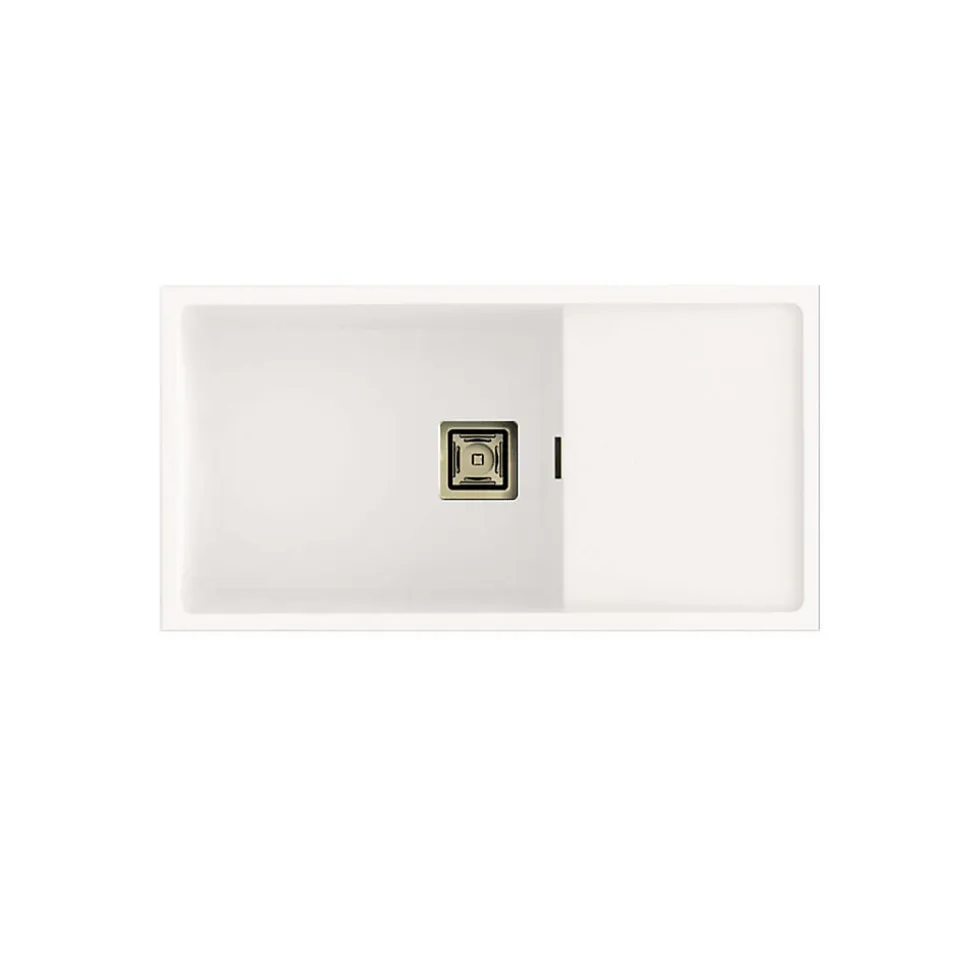 Evier à installation sous plan avec une cuve et un égouttoirRésistance aux rayures, à l’abrasion, à la chaleur (185°C), aux agents chimiques et aux colorants selon les tests UNE-EN 13310 -> Sans altérationLivré avec bonde manuelle carrée, siphon, colle mastic et barre de soutien.
