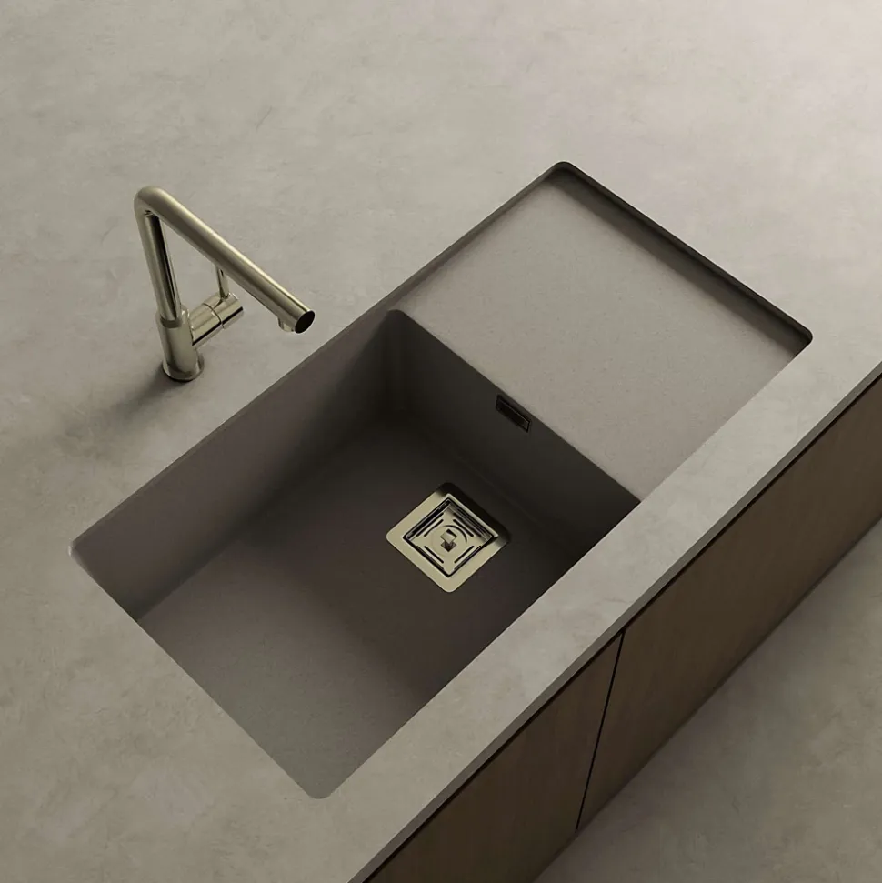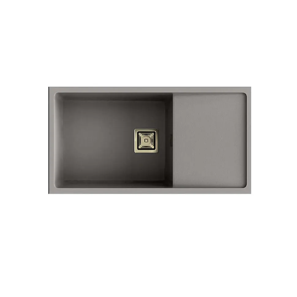 Cuve sous plan POALGI, ZIE 185, Granit, Gris Ash, 85 cm, 1 bac et 1 égouttoir bonde or