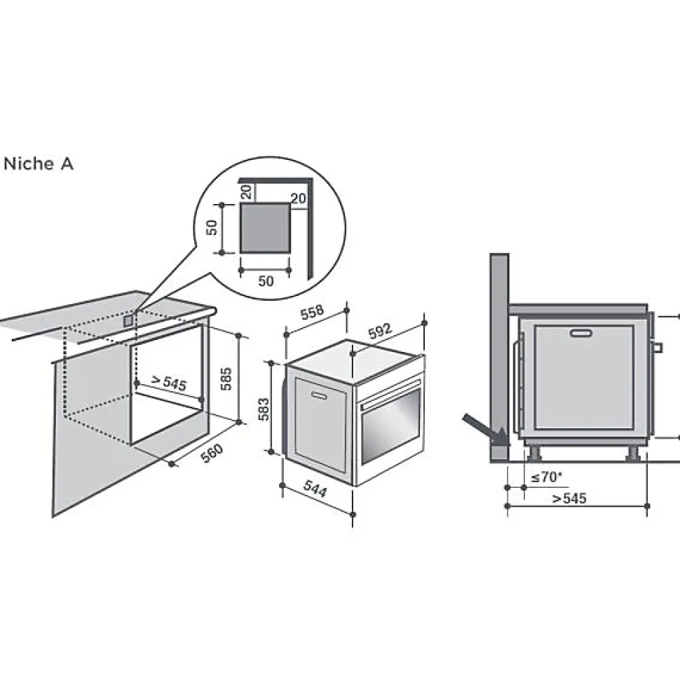 Four pyrolyse – 9 modes de cuisson dont Chaleur Tournante, Chaleur Combinée, Maintien au chaud et Pain – Afficheur Gourmet LED blanc – Manette sertie d’inox gravé avec un anneau intérieur cuivré – Préconisation de température – Mode Chef 6 plats (100% automatique) – Basse Température sur 10 plats – Guide culinaire pour 15 recettes – Fonction Séchage : ce procédé de déshydratation permet de sécher à une température, entre 60 et 80°C, nombre d’aliments différents comme les herbes aromatiques, fruits ou légumes. En empêchant la prolifération des bactéries, il permet ainsi de les conserver plusieurs mois – Gril variable 4 puissances – 3 niveaux de pyrolyse dont Pyro Express 59 min – Eclairage Halogène – Rail télescopique 60% – Cavité Enamélite – Porte froide – Contre-porte plein verre démontable – Fermeture douce de la porte SoftClose – Sécurité enfants – Finition Noir Absolu.Code EAN : 3660767976795Volume du four : 73 LEnergie four : électriqueType de cuisson : MultifonctionChaleur tournante : ouiModes de cuisson : 9Programmateur : électroniquePréconisation température : ouiCuisson basse T° : ouiSonde de cuisson : nonFonction Vapeur : nonPorte froide : ouiOuverture porte : abattanteEclairage intérieur : halogèneAccessoires : 2 grilles + 1 lèche-frite + rail télescopîque 1 niveauConnecté : nonLABELSLabel énergie : A+Le + produit : Mode Chef 6 platsDisponibilité des pièces détachées : 10 ans (donnée constructeur)Cordon électrique : fourni (130 cm) sans ficheColoris : anthraciteDimensions Encastrement (LxHxP) : 56 x 58,5 x 55,5 cmPoids net : 39,1 KgLieu de fabrication : Origine France Garantie