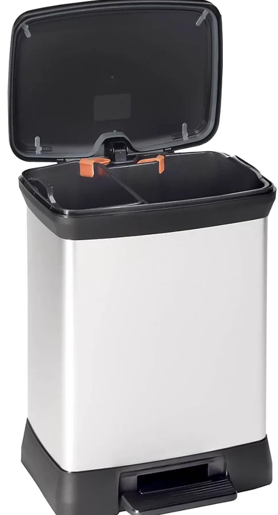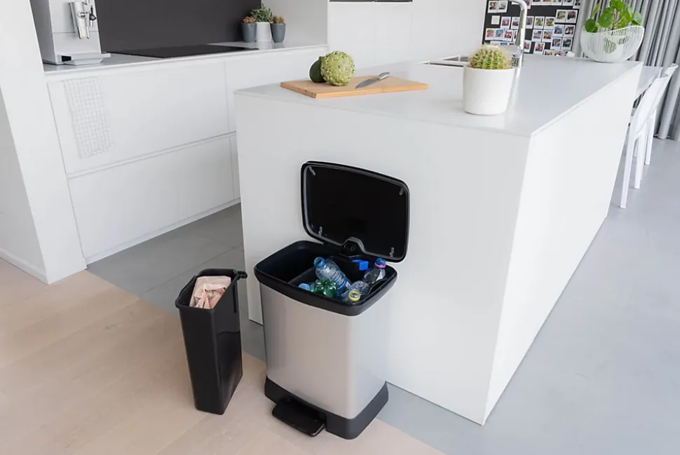 La série DECOBIN de Curver est un rêve de design ! Ces poubelles ont l’aspect du métal. mais ont l’avantage d’être fabriquées en plastique. ce qui leur confère un extérieur sans rouille et sans bosses. facile à nettoyer et qui ne laisse pas de traces de doigts. Disponibles dans une large gamme de formes et de tailles. elles s’adaptent à toutes les famille et à tous les goûts. Cette poubelle rectangulaire à pédale est une solution de tri pratique. Elle est équipée de deux seaux intérieurs d’une capacité de 10 litres et 18 litres et est livrée avec un jeu de clips colorés pour faciliter le tri des déchets. Alternativement. les deux compartiments peuvent être retirés. permettant à la poubelle d’être utilisée comme un modèle de 30 litres avec un seul compartiment. Quand les équipements pratiques sont aussi esthétiques. pourquoi ne pas ajouter une touche de style à votre intérieur ?
