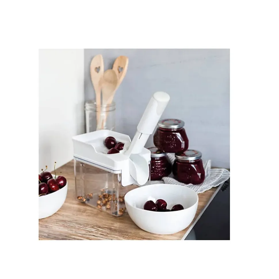 Dénoyautez jusqu’à 15 kg de cerises par heure avec le dénoyauteur à cerises Cherrymat de Leifheit. Son réceptacle spacieux et sa poignée « soft-touch » assurent confort et rapidité. Compact et facile à ranger, il est idéal pour gagner de la place dans votre cuisine. Les pieds antidérapants garantissent une stabilité parfaite, rendant le dénoyautage des cerises frais ou en conserve un jeu d’enfant.