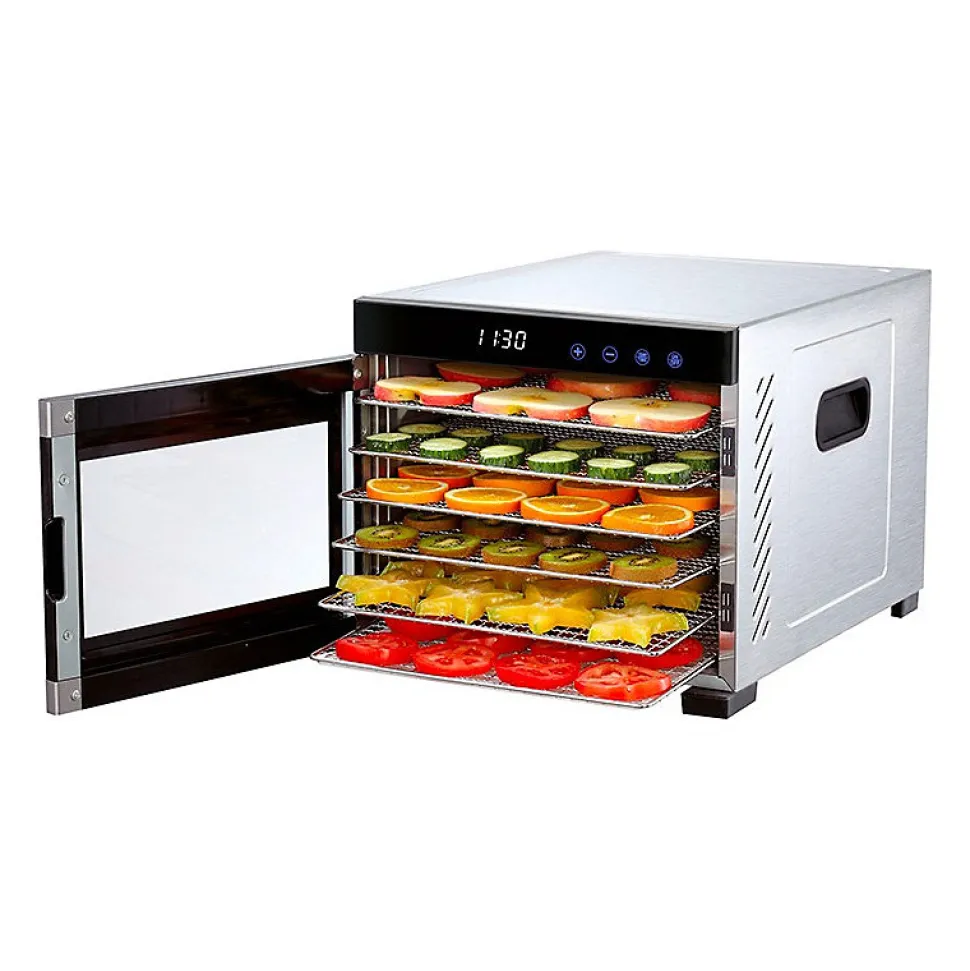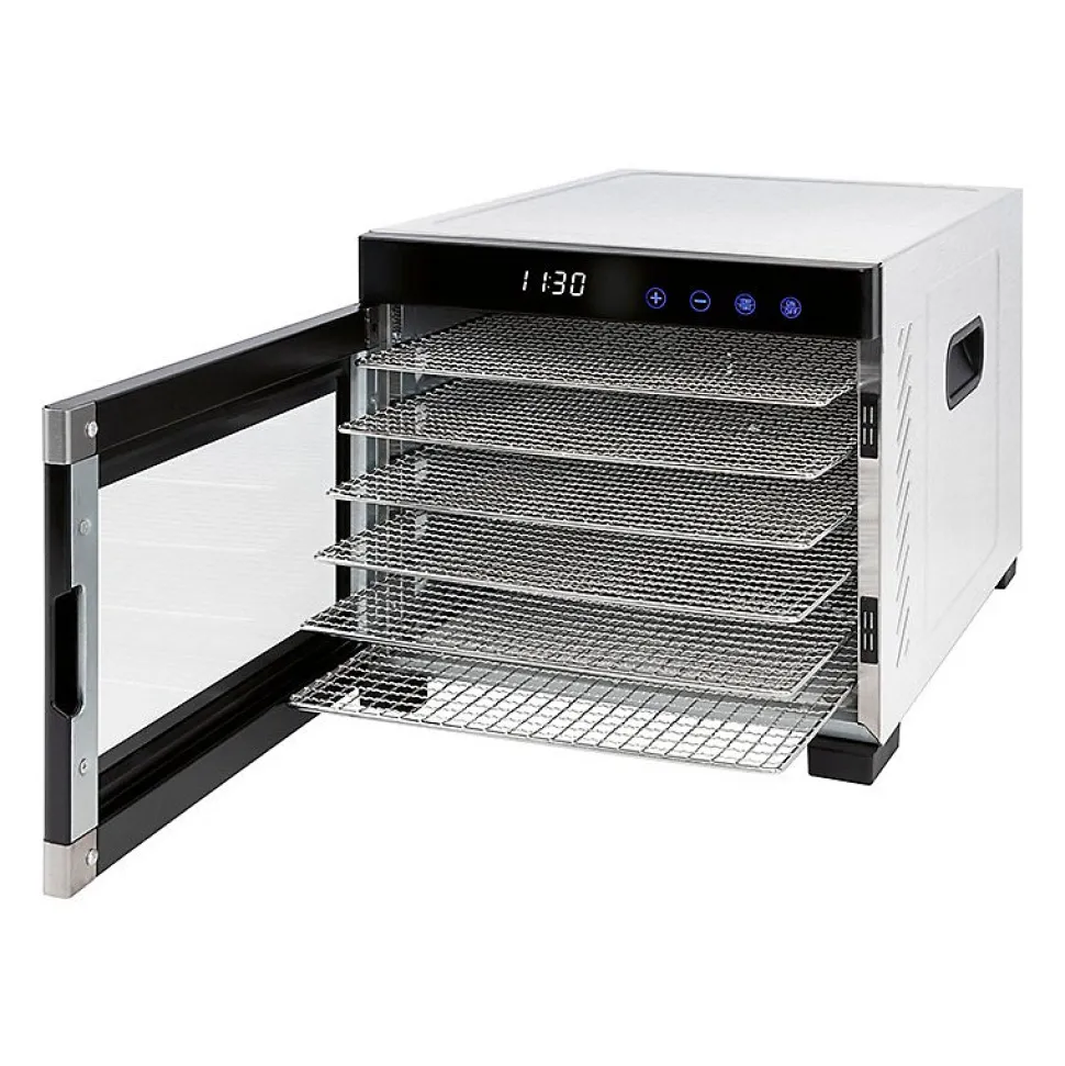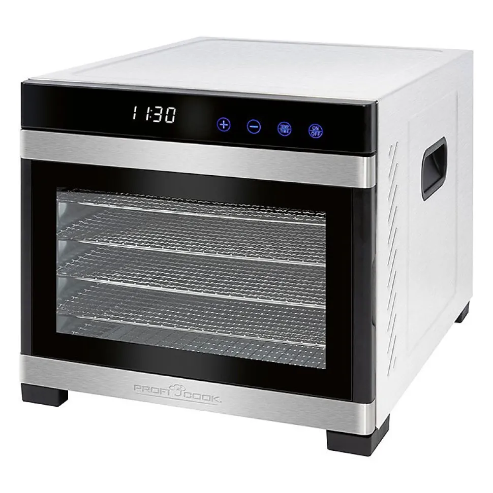 – Déshydrateur d’aliments en acier inoxydable pour sécher les fruits, les légumes, les herbes, la viande, les champignons, le poisson et plus encore. Riche en minéraux essentiels pour le bien-être, la remise en forme et la santé- Le séchage est une méthode très douce – tous les ingrédients sont préservés- Préparation de p. Ex. barres de muesli, b?uf séché, bouillon de légumes séchés, granola ou chips de légumes possible- HAUTE PERFORMANCE: Sèche les fruits, les légumes, la viande et d’autres aliments en un temps record pour produire des collations et des ingrédients délicieux et durables.- BONNE TEMPÉRATURE: Que ce soit pour préparer des fruits secs riches en vitamines tels que des chips de pomme et de banane ou des légumes sains tels que des tomates séchées- la bonne température peut être réglée pour tous les goûts.- CIRCULATION DU FLUX D’AIR: Une répartition uniforme de la chaleur grâce à une circulation d’air à 360 ° et un thermostat numérique garantissent qu’il ne reste pas d’eau dans les aliments et que le temps de séchage est court.- NETTOYAGE FACILE: Le nettoyage après le processus de déshydratation est simple: les 6 grilles de table en acier inoxydable, le revêtement antiadhésif et le plateau peuvent être rincés facilement.- Convient également pour la préparation d’aliments / friandises pour animaux de compagnie de haute qualité, comme la viande séchée- Grand intérieur avec jusqu’à 6 niveaux utilisables (0,6 m²) *- Livré avec 6 grilles en acier inoxydable (33 x 30,5 cm par grille) pour divers aliments séchés (durable, sans danger pour les aliments, hygiénique, facile à nettoyer, au lave-vaisselle)- Boîtier en acier inoxydable calorifugé (double paroi)- Porte en verre avec grande fenêtre de visualisation- Réglage de la température: 35-75 ° C par incréments de 5 ° C- Thermostat numérique inclus- Affichage électronique de la température (° C)- Minuterie électroniq