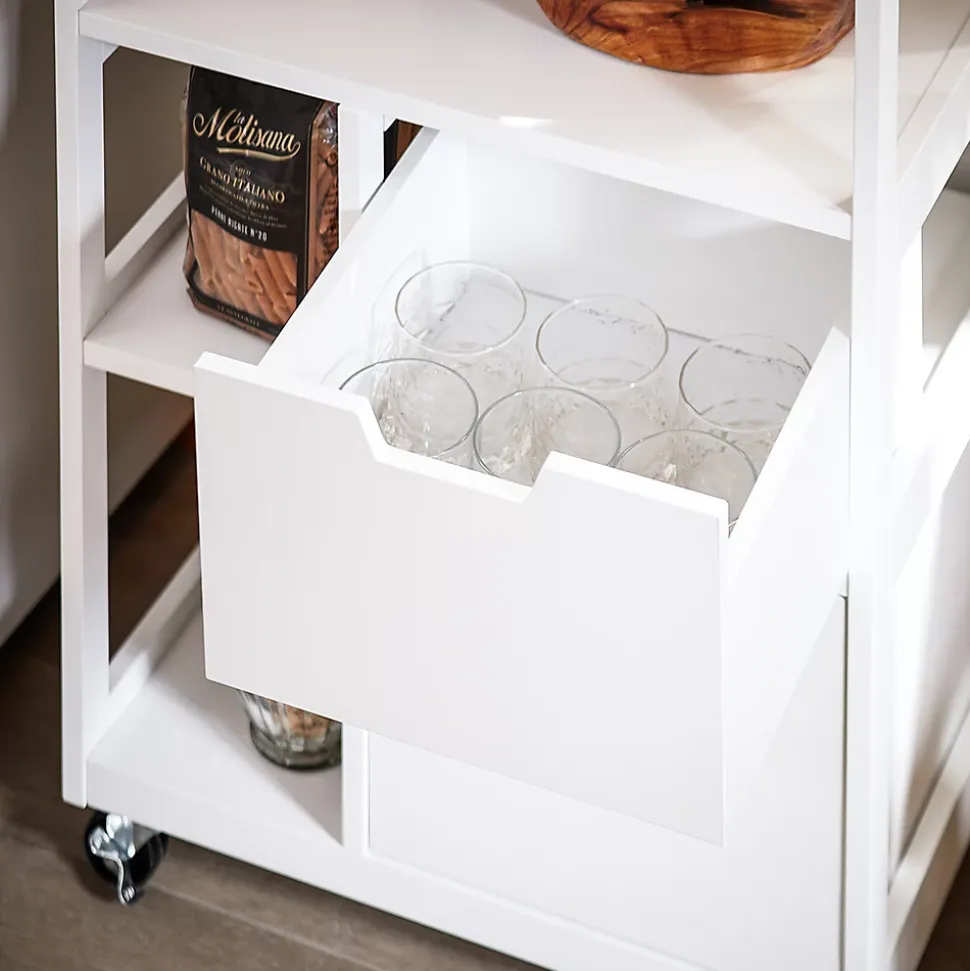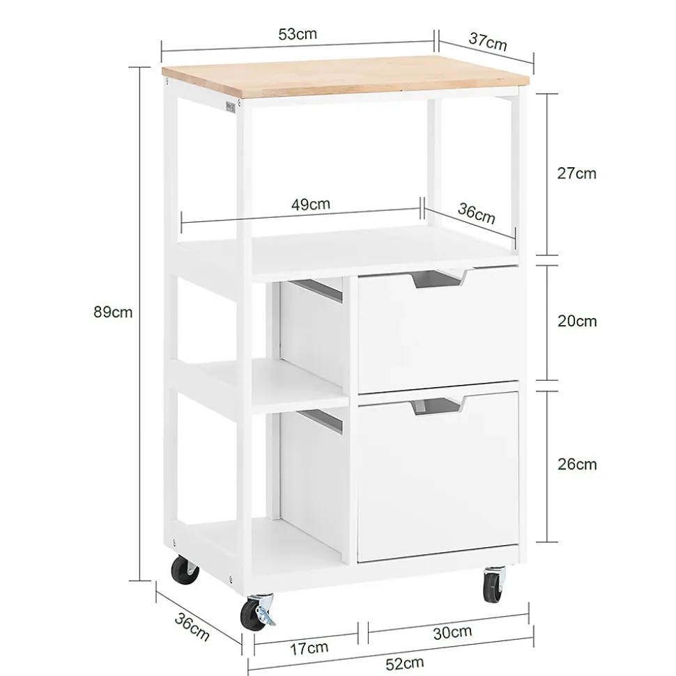 SoBuy FKW111-WN Desserte Roulante Meuble de Rangement Cuisine de ServiceIdéal pour divers ustensiles dans la cuisine, à la salle à manger, au restaurant ou partout où vous avez besoin de plus de stockage supplémentaire. Idéal également pour une fête de famille. Donnant la facilité pour vous et votre famille. Il offre un grand espace de rangement en économisant de l’espace au sol. Objets quotidiens tels que des pots, des casseroles, des vases ou des chandeliers peuvent être conservés idéal ici. Equipé de 2 grands tiroirs, et 3 étagère.4 roulettes facilitant sans effort le déplacement. Deux d’entre elles sont équipées d’un frein.La desserte peut être facilement poussée n’importe où. Facile à nettoyer et facile d’entretien. Details :- Matériaux : panneaux de particules classe E1 et métal. – Dimensions (LxHxP): 53 x 37 x 89 cm (voir image). – Capacité de charge jusqu’à 60 kg.- Cet article est livré sans éléments décoratifs des photos. – Livré à monter soi-même. Avec la notice de montage illustrée et les pièces numérotées, le montage est facile.