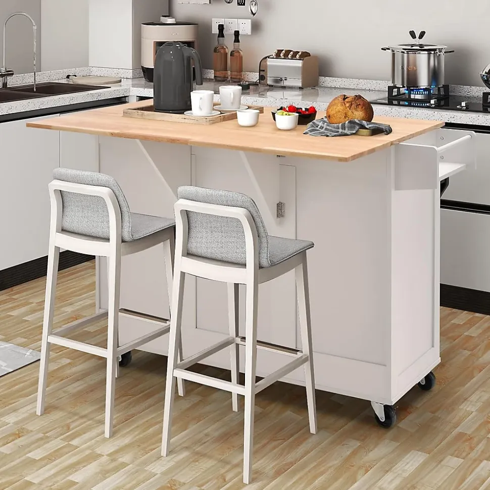 - Matériaux de qualité : Les plateaux de travail en bois de caoutchouc apportent non seulement une touche de beauté naturelle, mais offrent également une surface robuste et fiable pour la préparation des repas. Les armoires et les tiroirs sont équipés de charnières métalliques de qualité et de glissières métalliques lisses pour assurer un fonctionnement facile.