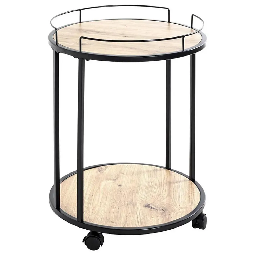 Informations Techniques : Dimensions : D. 45 x H. 60 cmHauteur Intermédiaire : 47 cmMatière : Métal, MDF & MélamineSpécificités :Tendance & DesignDesserte de Cuisine2 NiveauxForme RondeSur RoulettesEffet LaquéA monter soi-mêmeNombre de colis : 1Poids : 4,59 kgCouleur : Noir & Chêne