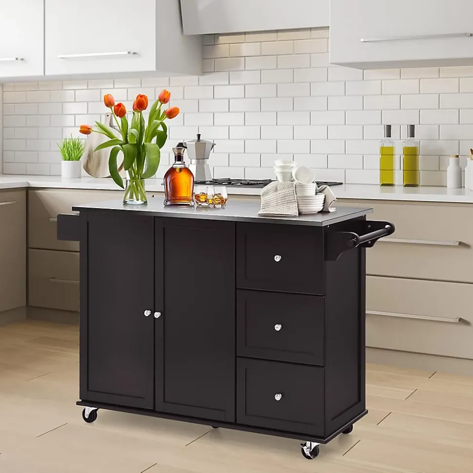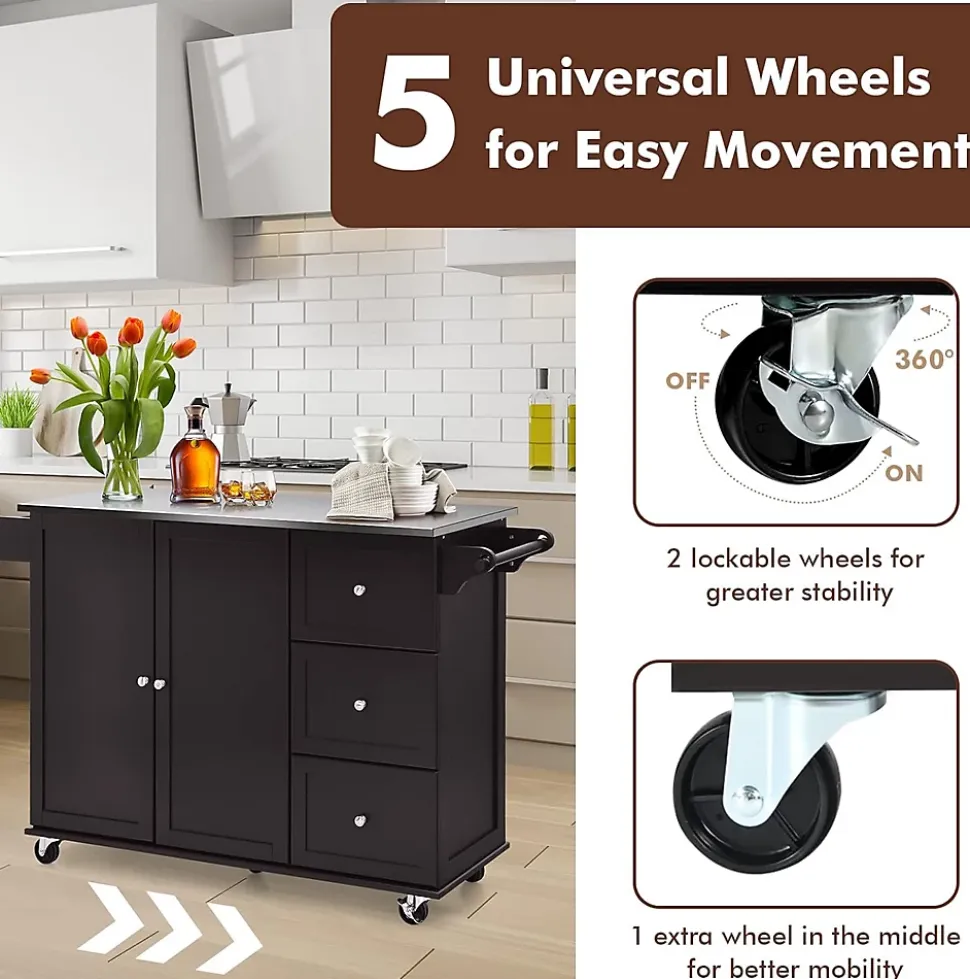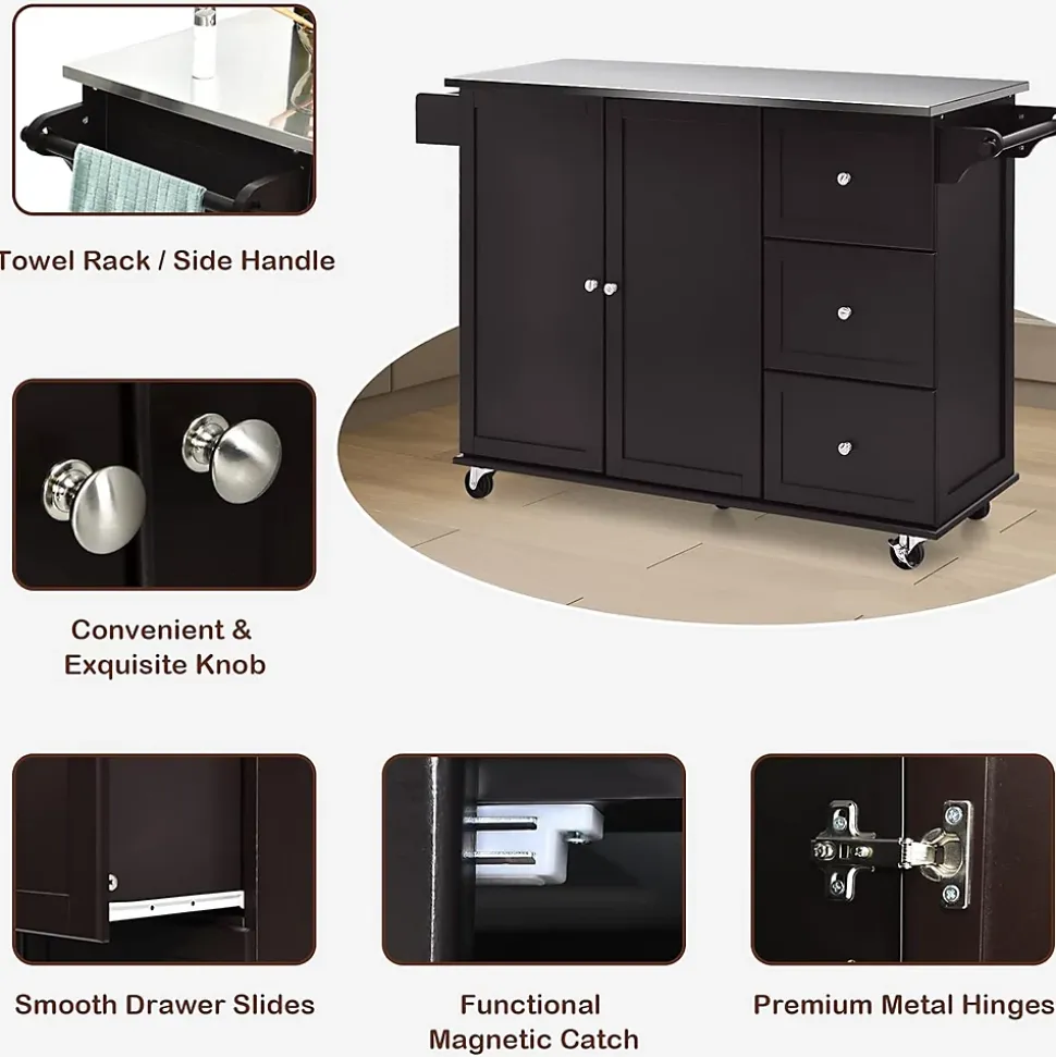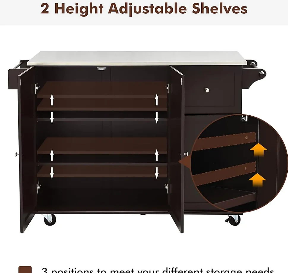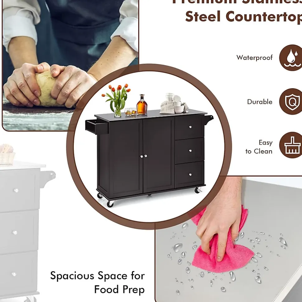 - Construction Robuste et Durable: Des panneaux MDF épais et une quincaillerie de haute qualité constituent une construction stable et robuste, qui confère à ce chariot de cuisine une longue durée de vie et une grande capacité de charge. Le plateau en acier inoxydable est fiable, résistant et facile à nettoyer.