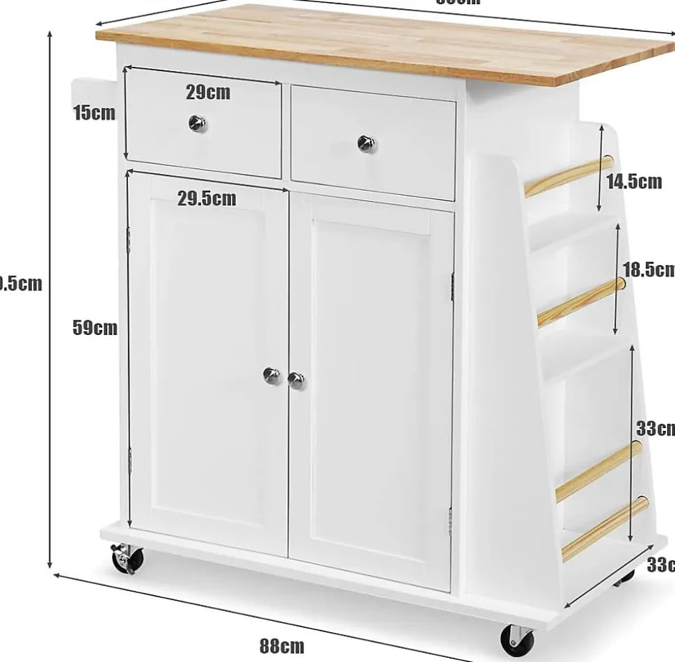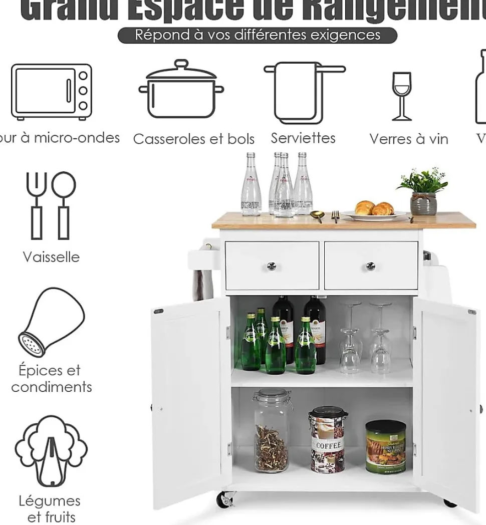 - Matériau Sélectionné et Construction Robuste: Ce chariot d’îlot de cuisine est fabriqué à partir de bois de haute qualité et de bois de caoutchouc massif, assurant une excellente stabilité, une forte capacité de charge et une durabilité. De plus, la surface est pulvérisée avec de la peinture de qualité supérieure pour devenir lisse, résistante à l’usure, imperméable et facile à nettoyer avec un chiffon humide.