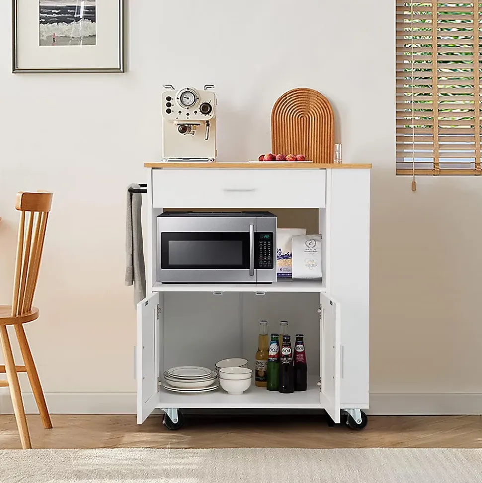 - Grand espace de rangement: Équipée de large plateau de table, de tiroir et d’armoire à double porte, notre desserte offre un espace de rangement suffisant pour les casseroles, poêles, bols, assiettes, etc., tout en empêchant la poussière d’entrer. Trois étagères ouvertes sur les côtés facilitent le stockage des épices, etc.