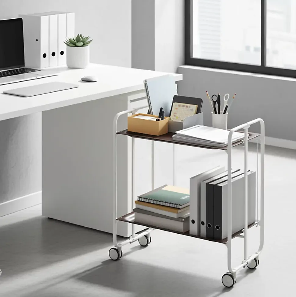 Desserte pliante BAUHAUS avec roulettes, Structure blanche, 2 niveaux, 4 positions