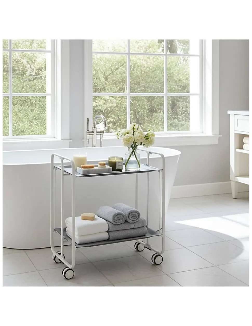 Desserte pliante BAUHAUS avec roulettes, Structure blanche, 2 niveaux, 4 positions