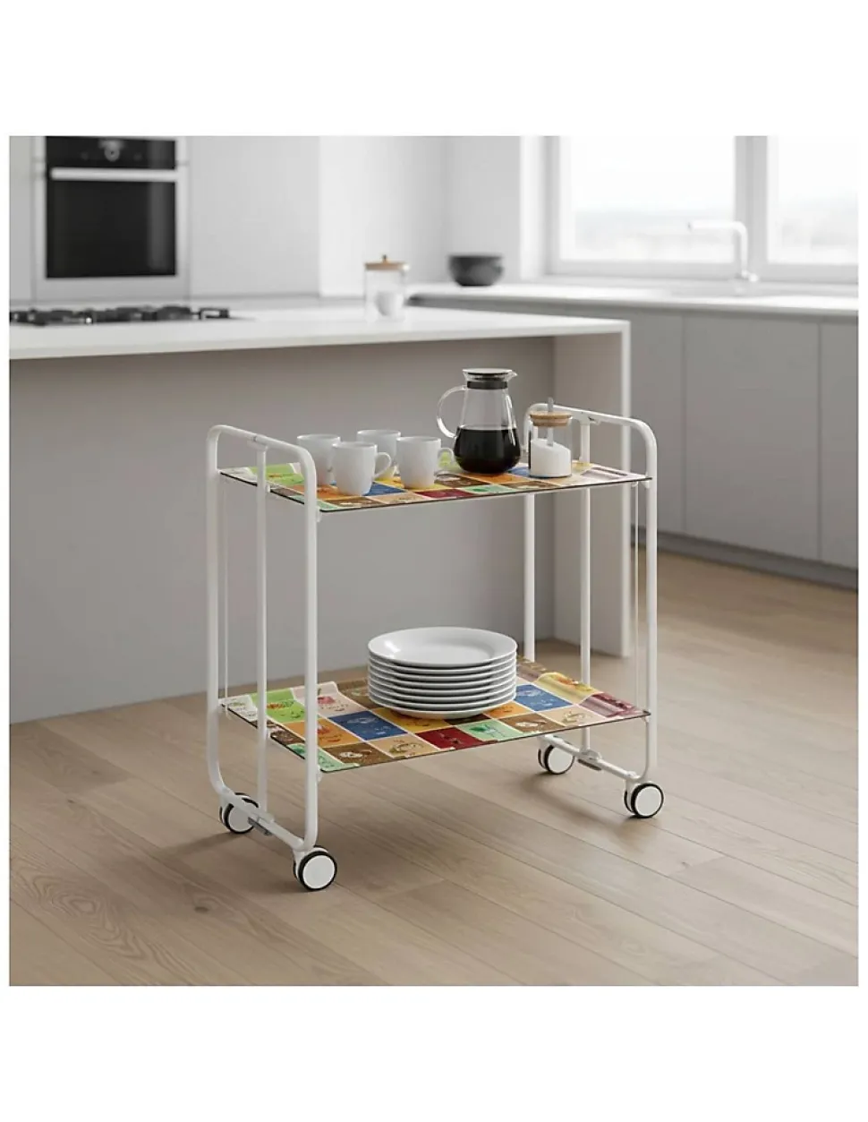 Desserte pliante BAUHAUS blanche – pratique, mobile et gain de placeLa desserte pliante BAUHAUS blanche est une solution fonctionnelle et élégante pour servir, ranger ou organiser facilement votre espace. Adaptée à la cuisine, au salon ou à la salle à manger, elle combine mobilité, stabilité et gain de place.Grâce à son système à 4 positions réglables (ouverte, fermée, semi-ouverte et semi-fermée), elle s’adapte à chaque besoin et se replie rapidement lorsqu’elle n’est pas utilisée. Ses 2 plateaux spacieux permettent de ranger, servir ou exposer vos objets en toute simplicité.Les roulettes pivotantes assurent un déplacement fluide et silencieux sur différents types de sols. La structure métallique blanche avec revêtement époxy offre une bonne résistance à l’usage quotidien et un entretien facile. Les plateaux en stratifié décoratif sont conçus pour un nettoyage simple et rapide.La desserte est livrée montée, prête à l’emploi, sans assemblage nécessaire. Son format compact une fois pliée facilite le rangement dans les petits espaces.Dimensions :Ouverte : H 72 × L 66 × P 43 cmPliée : H 86 × L 71 × P 9 cmDistance entre plateaux : 41 cmFabrication : fabriquée en Espagne.BAUHAUS, une desserte pliante fiable et polyvalente, pensée pour simplifier le quotidien.