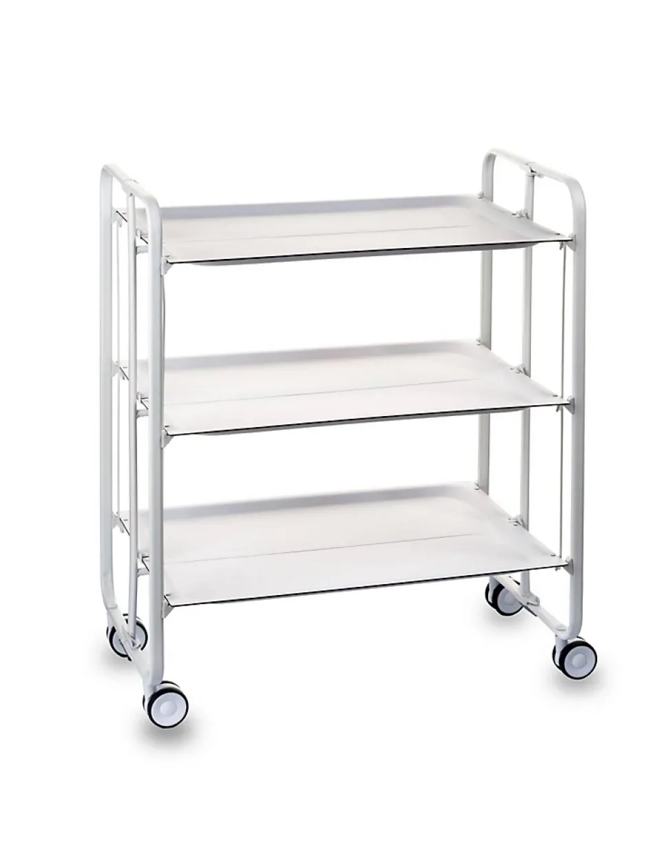 - Structure métallique blanche avec revêtement époxy protecteur. Plateaux en stratifié décoratif, faciles à nettoyer et adaptés à un usage quotidien.