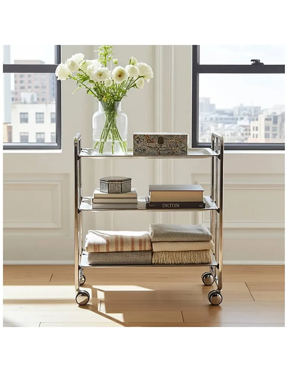 Desserte pliante BAUHAUS chromée avec roulettes – 3 niveaux et 3 positionsLa desserte pliante BAUHAUS chromée 3 niveaux associe design contemporain et savoir-faire européen. Sa structure métallique chromée avec finition transparente qui met en valeur son éclat naturel lui confère une allure élégante et professionnelle.Grâce à ses 3 plateaux en stratifié décoratif, cette desserte offre un espace généreux pour ranger, présenter ou servir avec style. Idéale pour la cuisine, le bar, le restaurant ou le bureau, elle conjugue esthétique moderne et confort d’usage.Design fonctionnel et grande capacitéSon système de 3 positions réglables — ouverte, semi-fermée et pliée — permet d’adapter la desserte à chaque besoin. Ses 3 niveaux de rangement offrent une surface pratique tout en se repliant facilement pour économiser de l’espace.3 plateaux spacieux pour ranger, servir ou exposer.3 positions réglables pour un usage modulable.Roulettes pivotantes pour une mobilité fluide et silencieuse.Structure métallique chromée avec finition transparente qui met en valeur son éclat naturel.Plateaux décoratifs en stratifié, faciles à nettoyer et adaptés à un usage quotidien.Matériaux sélectionnés pour leur fiabilité et leur usage fréquent.Livrée montée et prête à l’emploi.Dimensions approximativesOuverte : 82 cm (H) × 66 cm (L) × 43 cm (P) Pliée : 96 cm (H) × 71 cm (L) × 9 cm (P) Distance entre les plateaux : 26 cmStyle professionnel et design moderneSa finition chromée reflète la lumière et apporte une touche lumineuse à tout espace. Élégante et pratique, la desserte BAUHAUS chromée trouve sa place aussi bien à la maison que dans un cadre professionnel, du salon au bar ou à la réception.Fabrication espagnole et contrôle soignéFabriquée en Espagne selon un processus rigoureux. Chaque pièce est vérifiée individuellement pour garantir une utilisation fiable.Une desserte pliante au design épuré, pensée pour un usage quotidien.Grande capacité · Design fonctionnel · Fabrication espagnole