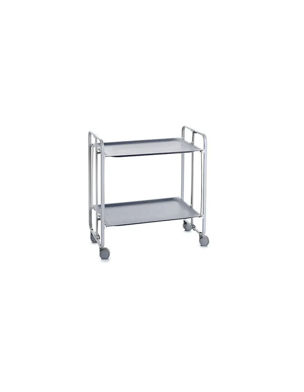 Desserte pliante BAUHAUS grise avec roulettes – 2 niveaux et 4 positionsLa desserte pliante BAUHAUS grise reflète l’élégance sobre du design contemporain. Sa structure métallique grise et ses plateaux en stratifié décoratif composent un ensemble harmonieux et pratique, idéal pour les intérieurs modernes, scandinaves ou industriels.Grâce à son système pliant ingénieux, elle s’utilise aussi bien comme desserte de cuisine que comme chariot de service ou table d’appoint mobile. Facile à déplacer, à ranger et à entretenir, elle offre une solution gain de place adaptée à chaque espace.Design fonctionnel et adaptableLe système de 4 positions réglables — ouverte, fermée, semi-ouverte et semi-fermée — permet d’ajuster la desserte selon vos besoins. Les roulettes pivotantes assurent un déplacement fluide et stable.2 plateaux spacieux pour ranger, servir ou décorer.4 positions réglables pour un usage polyvalent.Roulettes pivotantes pour un déplacement fluide.Structure métallique grise avec revêtement époxy protecteur.Plateaux en stratifié décoratif, faciles à nettoyer.Matériaux sélectionnés pour leur fiabilité et leur usage fréquent.Livrée montée et prête à l’emploi.Dimensions approximativesOuverte : 72 cm (H) × 66 cm (L) × 43 cm (P)Pliée : 86 cm (H) × 71 cm (L) × 9 cm (P)Distance entre les plateaux : 41 cmStyle sobre et polyvalentSa teinte grise et ses lignes équilibrées s’intègrent facilement à tout type d’intérieur. Cette desserte mobile combine fonctionnalité et esthétisme, apportant une touche contemporaine sans alourdir l’espace.Fabrication et savoir-faire espagnolsFabriquée en Espagne selon un processus rigoureux, la desserte BAUHAUS bénéficie d’une conception soignée et d’un contrôle qualitatif permanent. Chaque unité est vérifiée pour garantir une utilisation fiable et un aspect homogène.Une desserte pliante design et pratique, idéale pour un intérieur organisé.Design fonctionnel · Fabrication espagnole · Qualité contrôlée