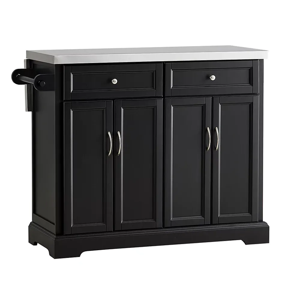 Gewicht: ca.: 55,7kg; Belastbarkeit: bis 75kg; Material: Hochwertiger Holz mit MDF + Edelstahltop. Produktmaße: BHT ca.: 115x92x46-71cm (siehe Abbildung); Paketmaße: Paket A: 119x55x25cm; Paket B: 98x46x25cm. Die auf der Rückseite erweiterbare Arbeitsplatte aus Edelstahl bietet ein variables Platzangebot und punktet durch ihre solide Tragfähigkeit. Ausgestattet mit einem Handtuchhalter, zwei geschlossenen Schubladen und zwei Geschirrschränken mit Türen, in denen Sie viele Utensilien verstauen können. Der Küchenwagen sorgt mit der schicken Optik für ein ganz besonderes Highlight im Koch- und Essbereich.
