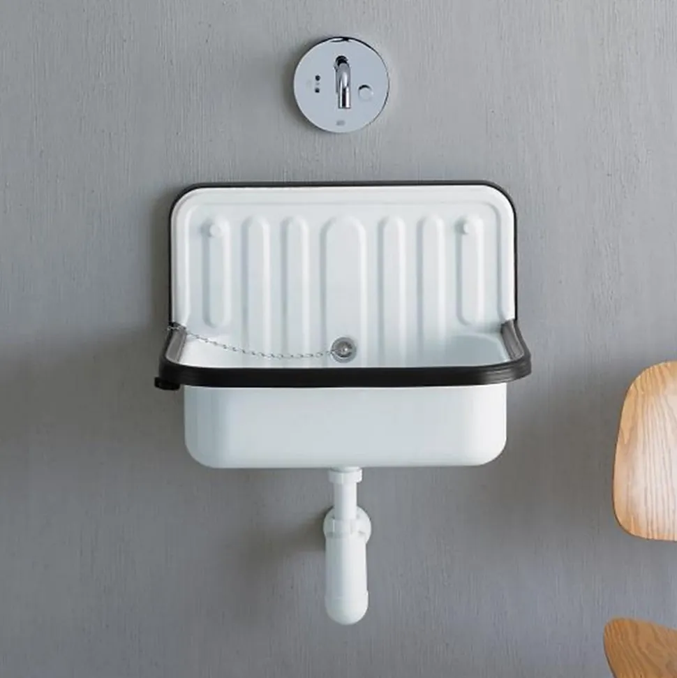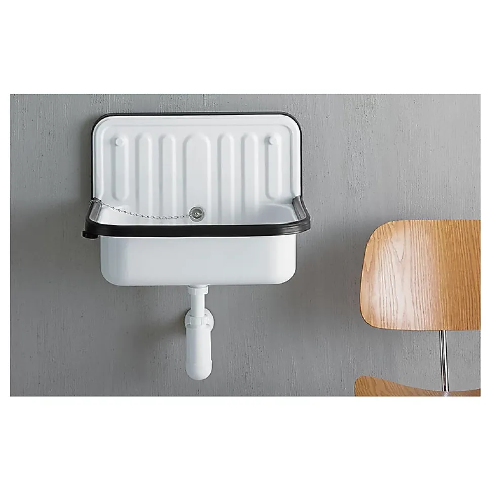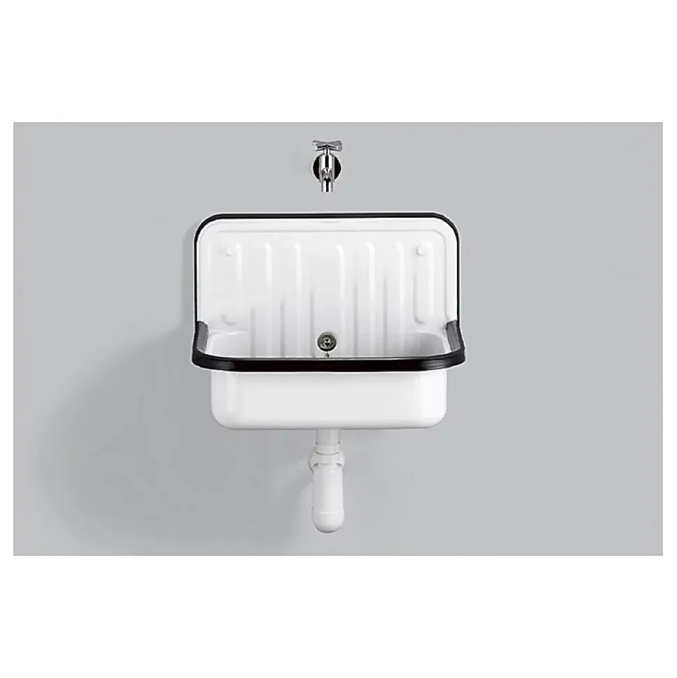 Déversoir mural avec trop plein – Couleur : BLANC avec bordure en plastique ALAPE – Référence :1200000000 – Déversoir mural avec trop plein – Sans percement- Équipé d’un trop plein- Acier vitrifié- Fixation murale (avec kit founi)- Chaînette et bouchon inclus- Sans grille en alu- Blanc- Bordure en plastique noir foncé- Rebord en plastique & protection contre les éclaboussuresIdéal pour une ambiance rétro et vintage, le déversoir mural d’Alape, peut aller aussi bien dans une buanderie que dans un garage. Remarque Les éviers de vidage sont conçus exclusivement pour le montage dans les caves, les garages ou les buanderies et non pour l’hygiène personnelle. Dimensions : 510 x 360 x 365 mm Poids : 3,7 kg