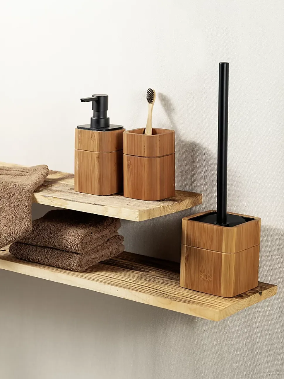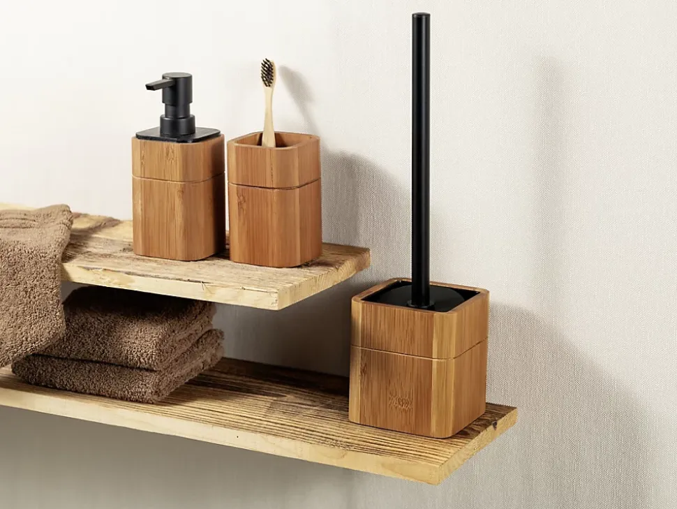 - Durable : le récipient du distributeur rechargeable est fabriqué en bambou foncé certifié FSC® et assure un design proche de la nature dans la salle de bain ou les toilettes.