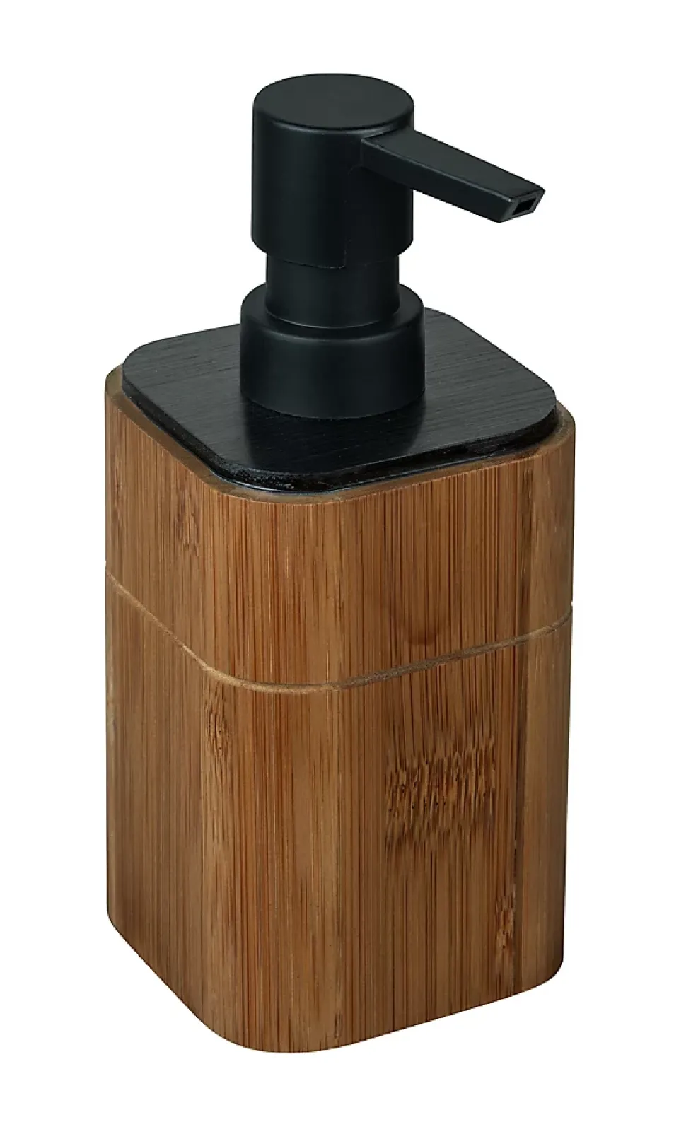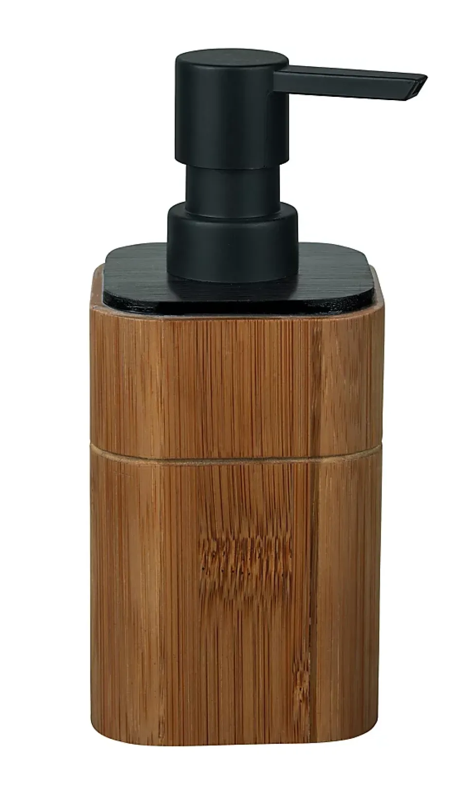 Distributeur de savon à pompe 200ml, bambou et plastique noir, Wenko Serro