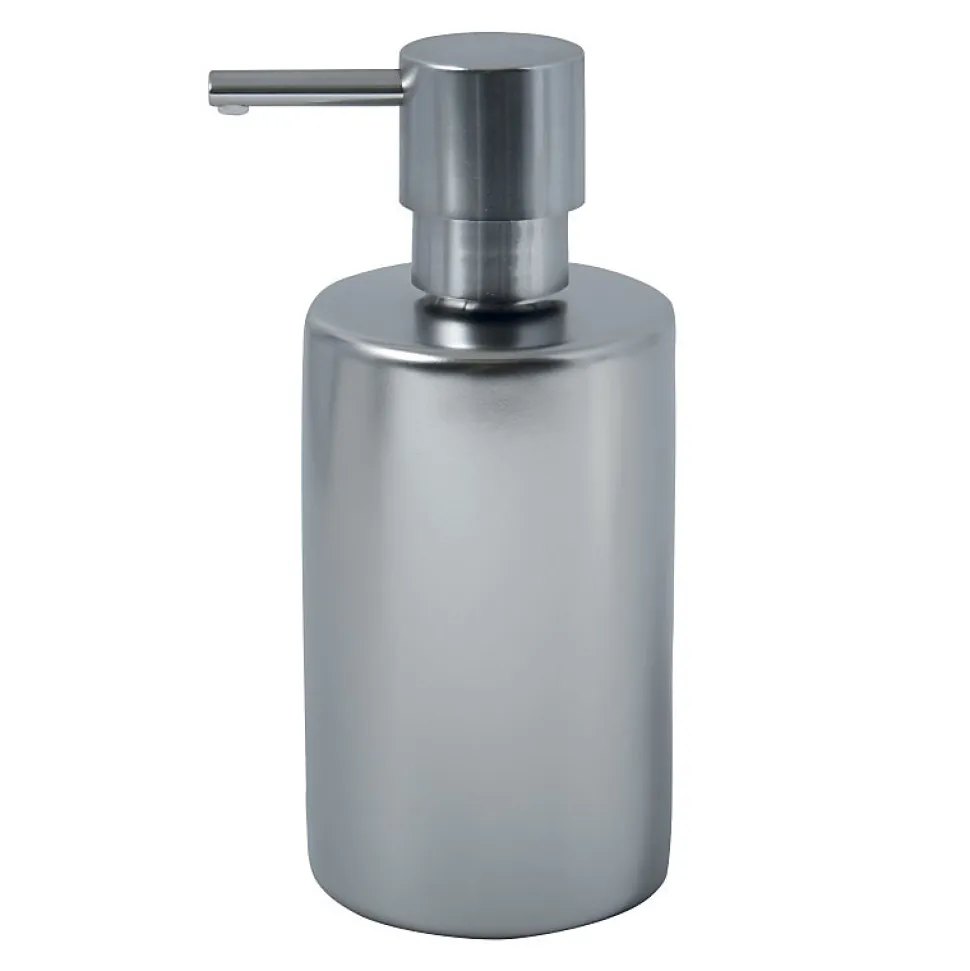 Distributeur de savon de la marque Spirella.Tout en élégance, le distributeur de savon de la gamme TUBE-MATT est un indispensable non seulement pour la décoration, mais aussi pour le stockage et le dosage pratique du savon. Les lotions et les désinfectants peuvent également être utilisés. Cette combinaison fait du distributeur un accessoire élégant et intemporel pour la salle de bain ou pour la cuisine. Un accessoire qui attire l’attention et qui s’intègre parfaitement dans n’importe quelle pièce. Rechargeable : Une fois le savon ou la lotion épuisée, le distributeur peut facilement être rempli à nouveau. S’adapte aux autres accessoires de salle de bain de la même série.Dimensions: 7x16cm Couleur: Argent mat Matière: Céramique