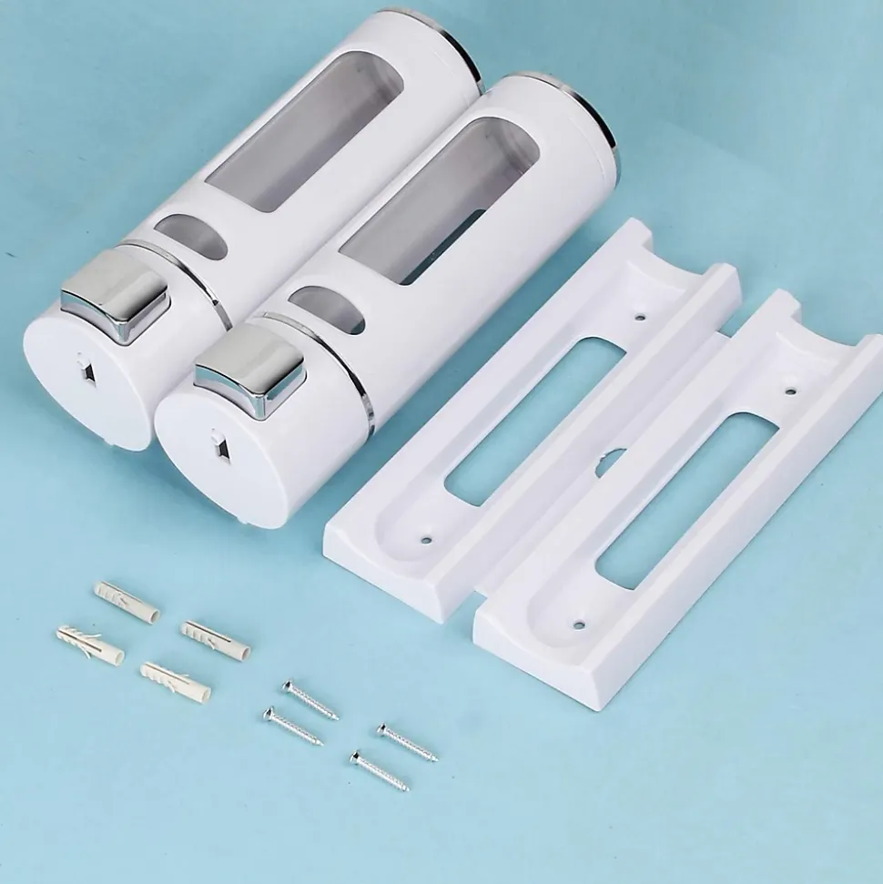 Deux distributeurs de savon de 400 ml fixés au mur, durables et élégants, idéaux pour les lotions, savons liquides ou assainissants, désinfectants, gels douche, shampoings, etc.Plastique ABS : robuste et durable. Résistant à la chaleur, pas facilement déformé, pas de bactérien, anti corrosion, sain et hygiénique à utiliserAvec une buse de liquide à sortie séparée, évitez les fuites et les déchets. Nettoyage facile: le distributeur se soulève de la plaque murale pour un nettoyage ou un remplissage facilesFacile à installer et à utiliser: peut être installé dans un coin ou à plat contre le mur, toutes les fixations étant fournies. Un distributeur de savon individuel se soulève du mur pour un nettoyage facileParfait pour une utilisation dans les salles de bains, les hôtels, les salles de sport, les clubs, les maisons, etc. Remarque: ce produit ne convient pas aux revitalisants épais, shampooings, etc.