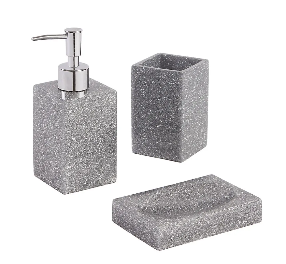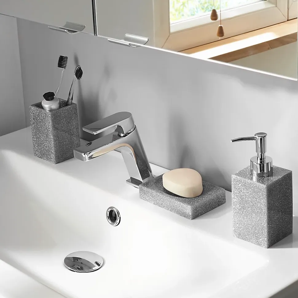 Distributeur de savon Glitter Capraia – Type : Distributeur de savon – Modèle : Capraia – Couleur : Gris – Décor : Pailleté – Matière : Résine