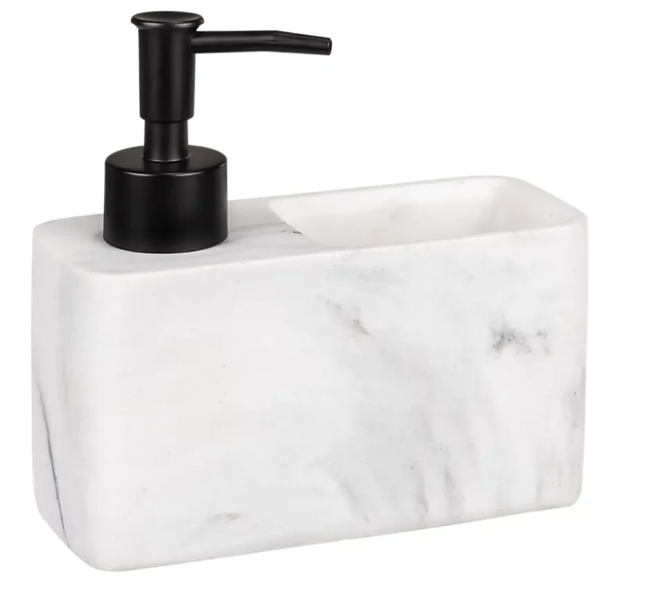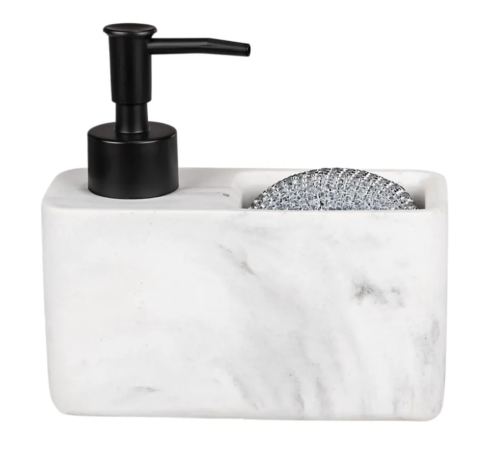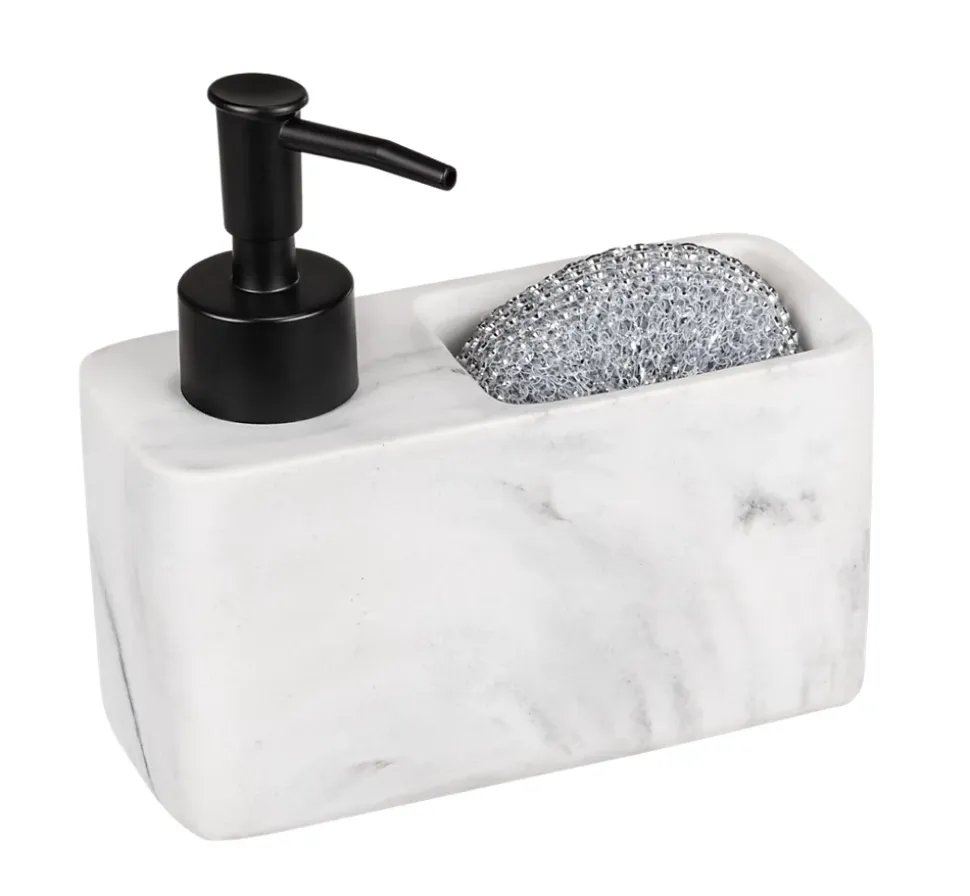 - Distributeur de produit à vaisselle 2en1 en polyrésine, aspect marbre