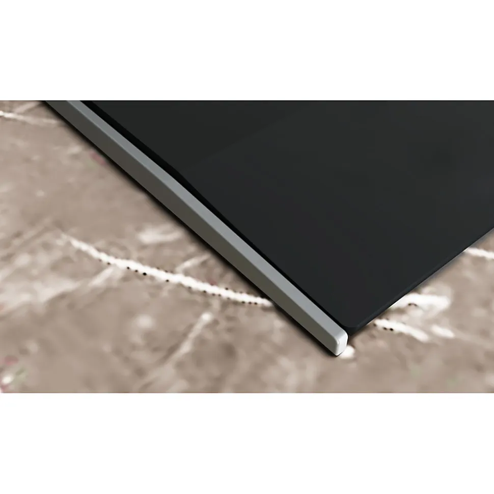 - Surface verre noir élégante avec bande frontale en aluminium brossé et manettes métalliques avec allumage une main.