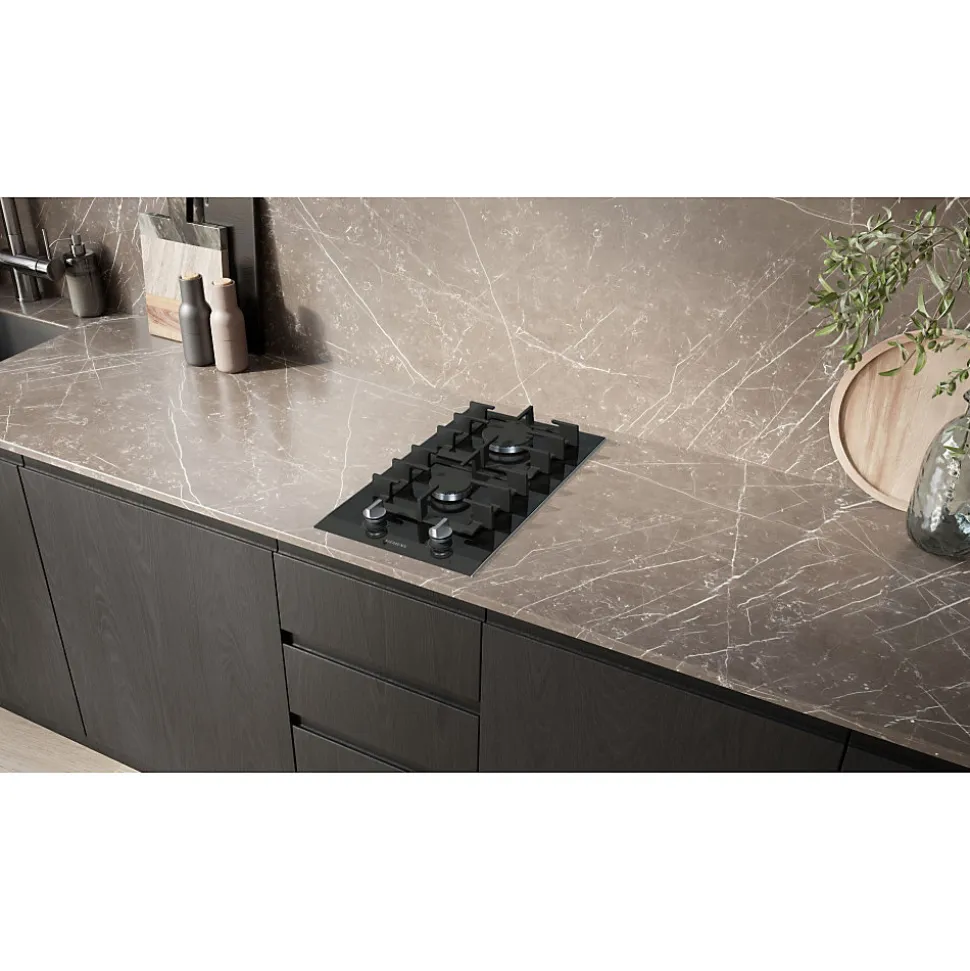 - Domino gaz compact iQ700 avec brûleur arrière puissant jusqu’à 3000 W et grilles en fonte bi‑pièces continues.