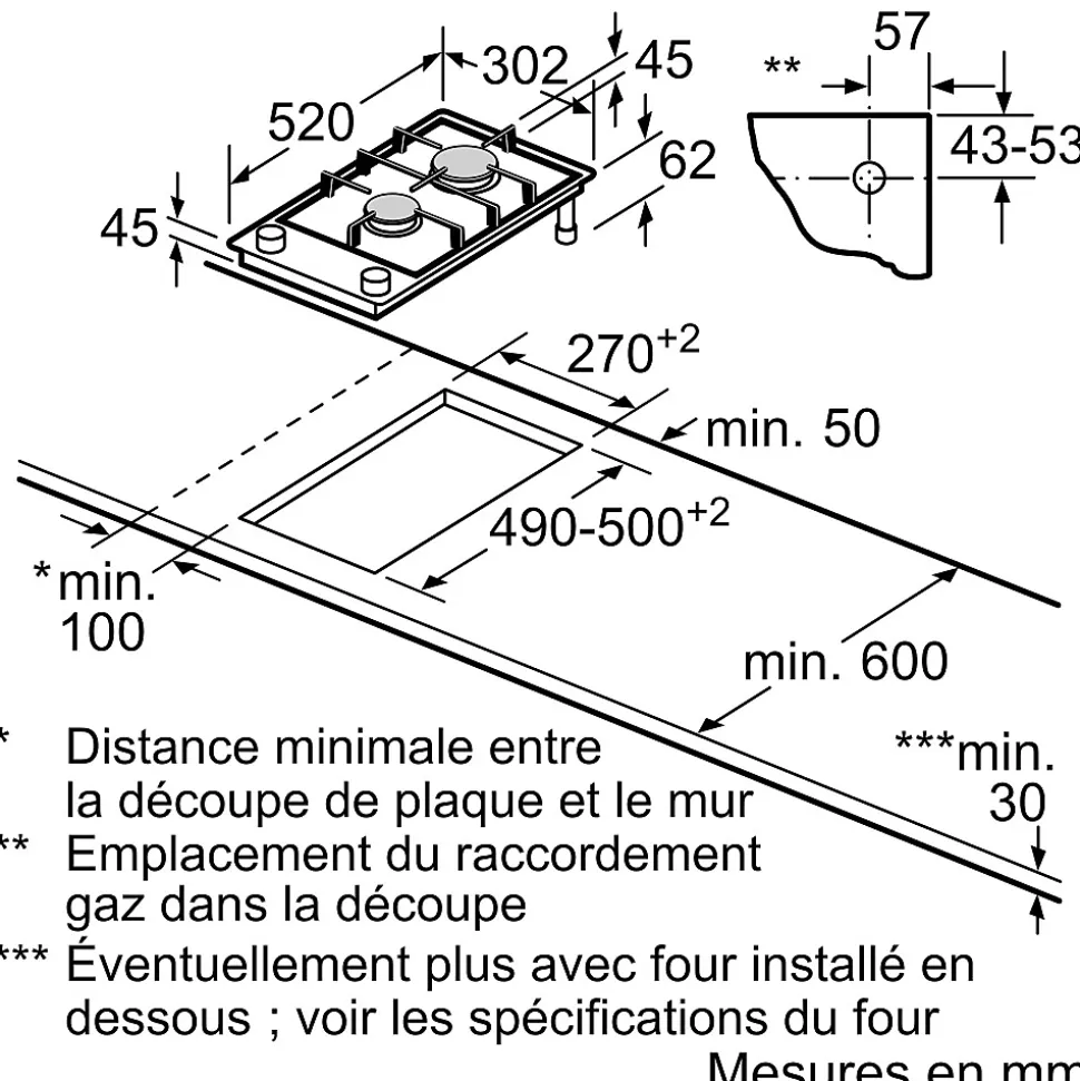 - Sécurité gaz intégrée et découpe d’encastrement compacte (490–500 x 270 mm) pour installation facile.